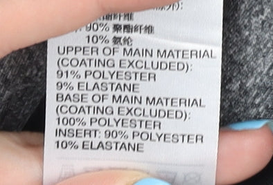 - Material Breakdown: 91% Polyester 9% Elastane 100% Polyester 90% Polyester 10% Elastane