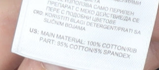- Material Breakdown: 100% Cotton 95% Cotton 5% Spandex