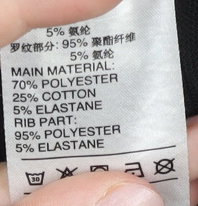 - Material Breakdown: 70% Polyester 25% Cotton 5% Elastane