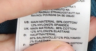- Material Breakdown: 88% Cotton 12% Nylon 2% Elastane