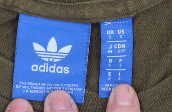Adidas Men's Brown Logo T-Shirt, Size S, Cotton, Crew Neck