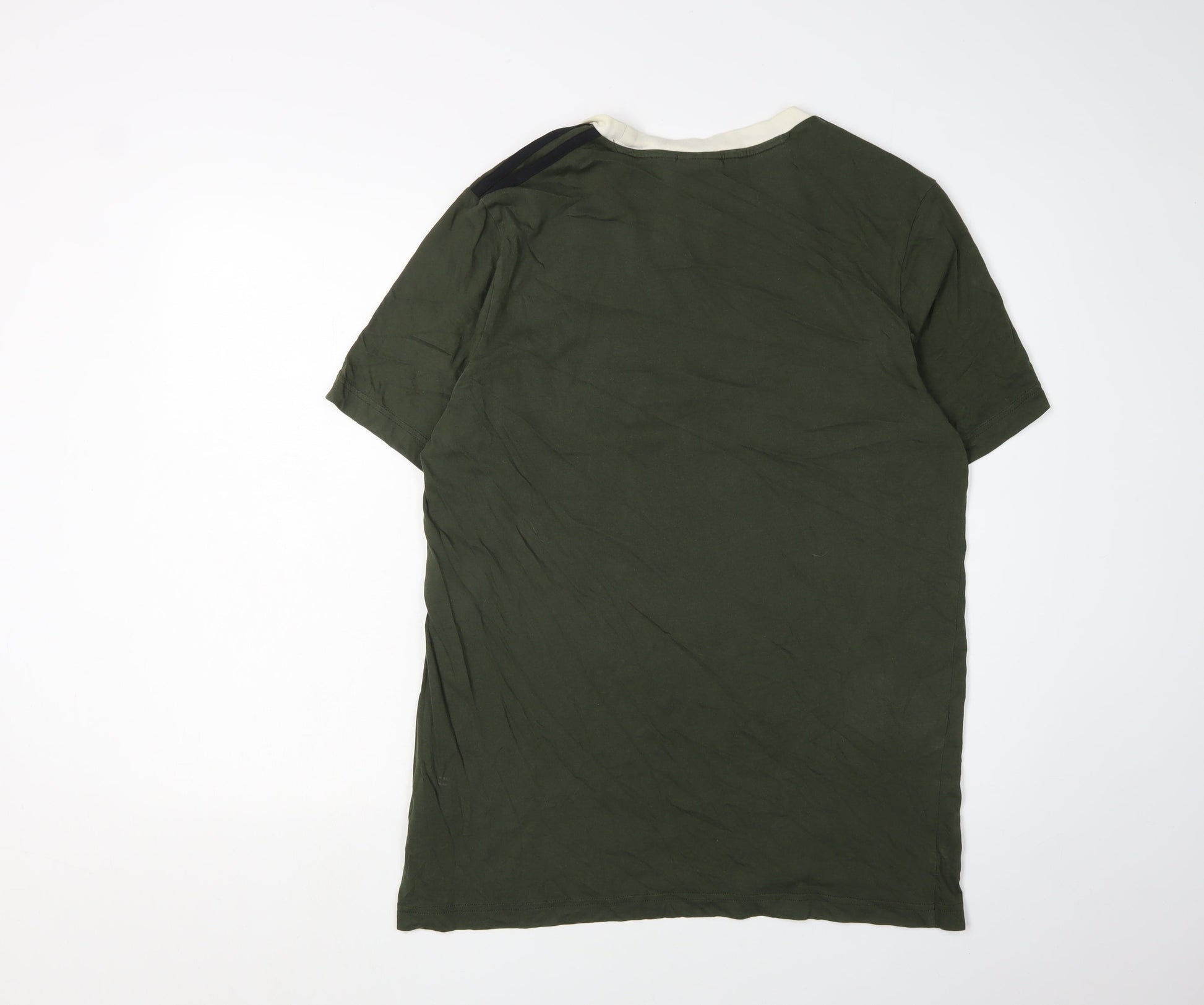 Adidas Men's Green Colourblock T-Shirt, Size L