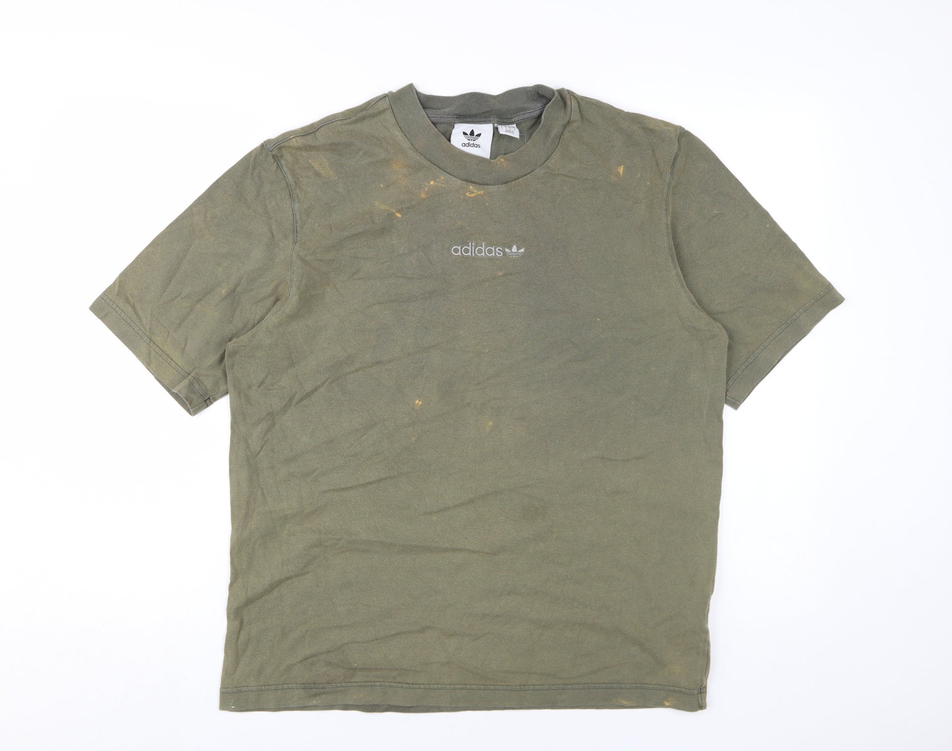 Adidas Men's Green T-Shirt - Small, Crew Neck, Logo