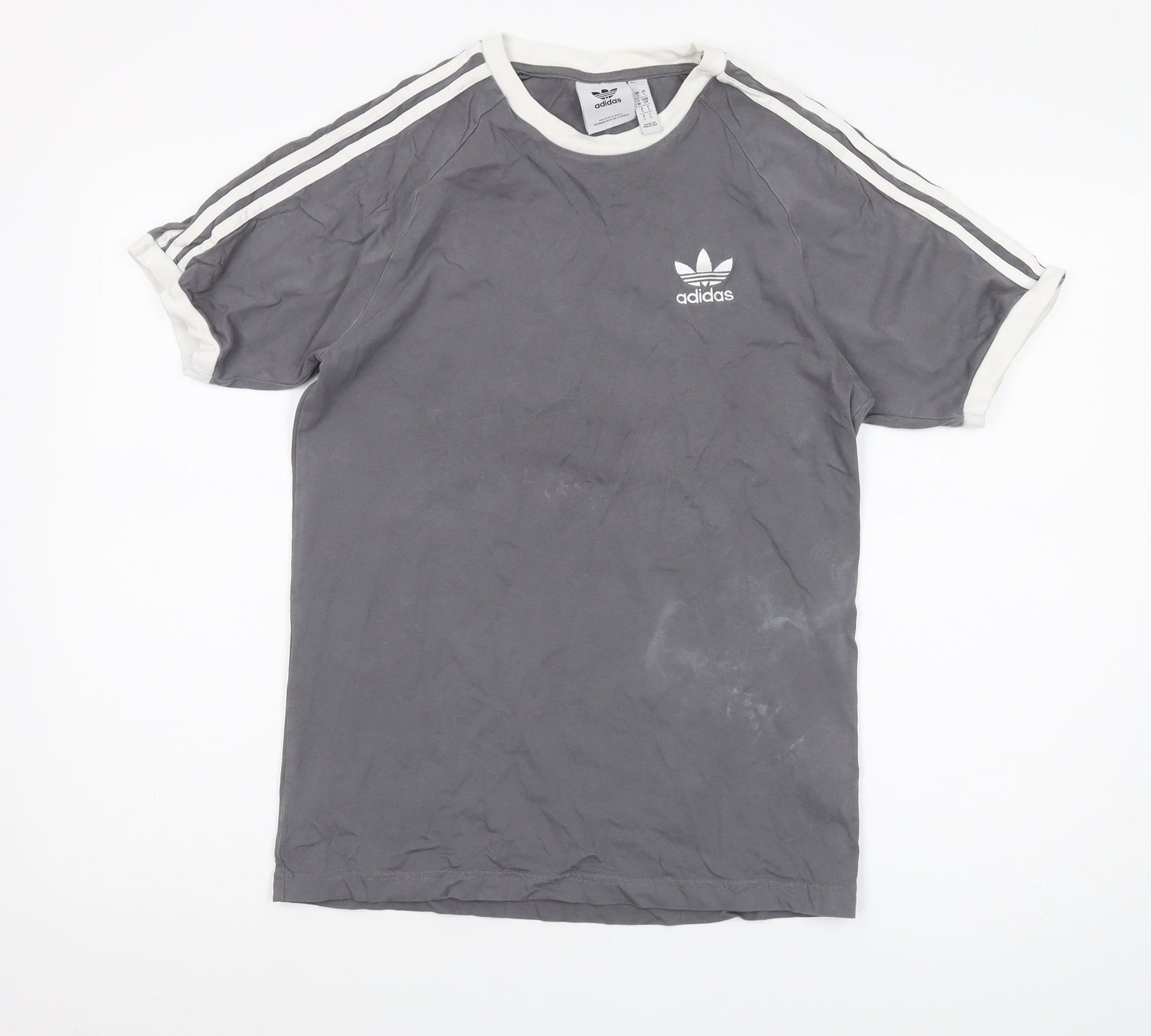 Adidas Men's Grey Cotton Logo T-Shirt Size S