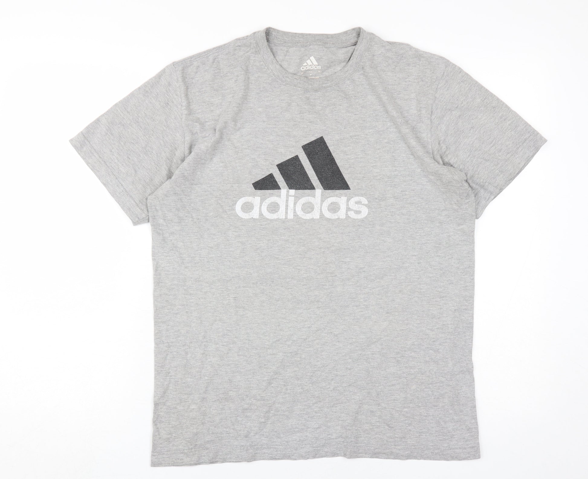 Adidas Men's Grey Crew Neck Logo T-Shirt, Size S - Excellent