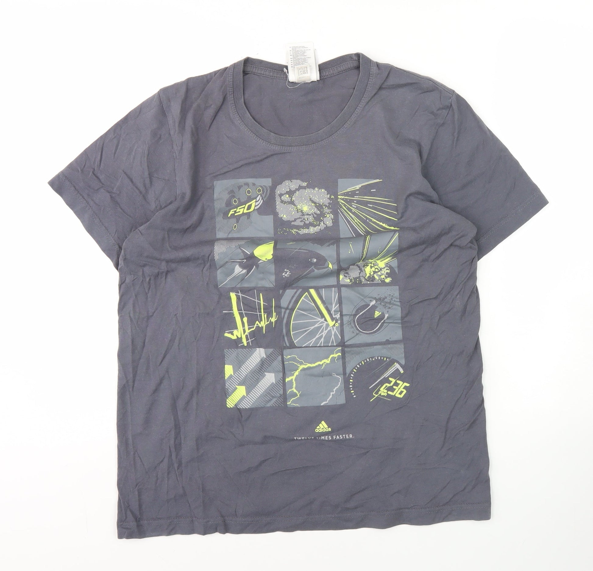 Adidas Men's Grey Graphic Print Short Sleeve T-Shirt
