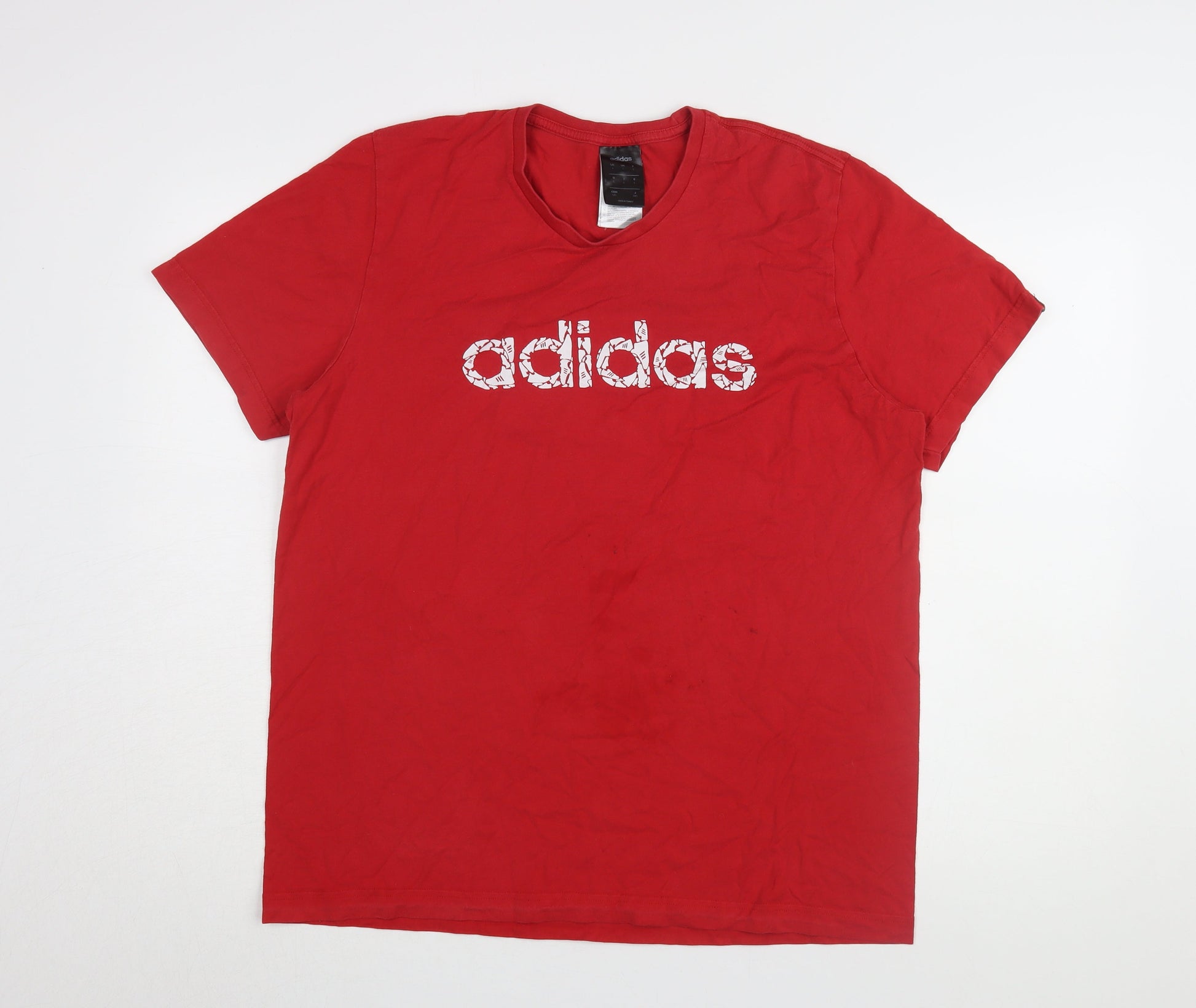Adidas Men's Red Crew Neck Logo T-Shirt Size L