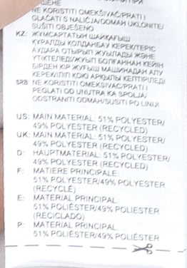 - Material Breakdown: 51% Polyester 49% Polyester (Recycled)