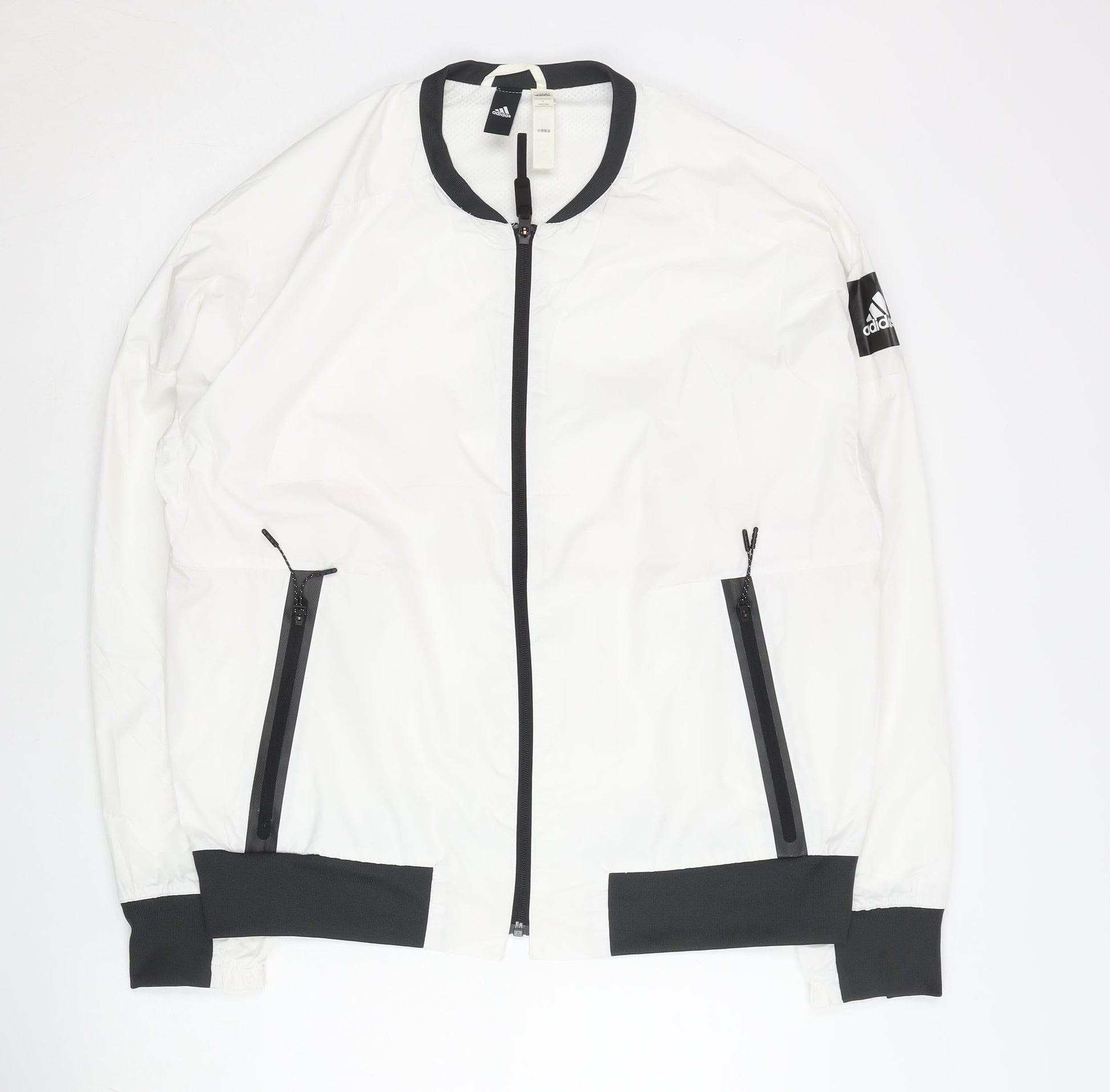 Adidas Men's White L Basic Activewear Jacket Full Zip Polyester