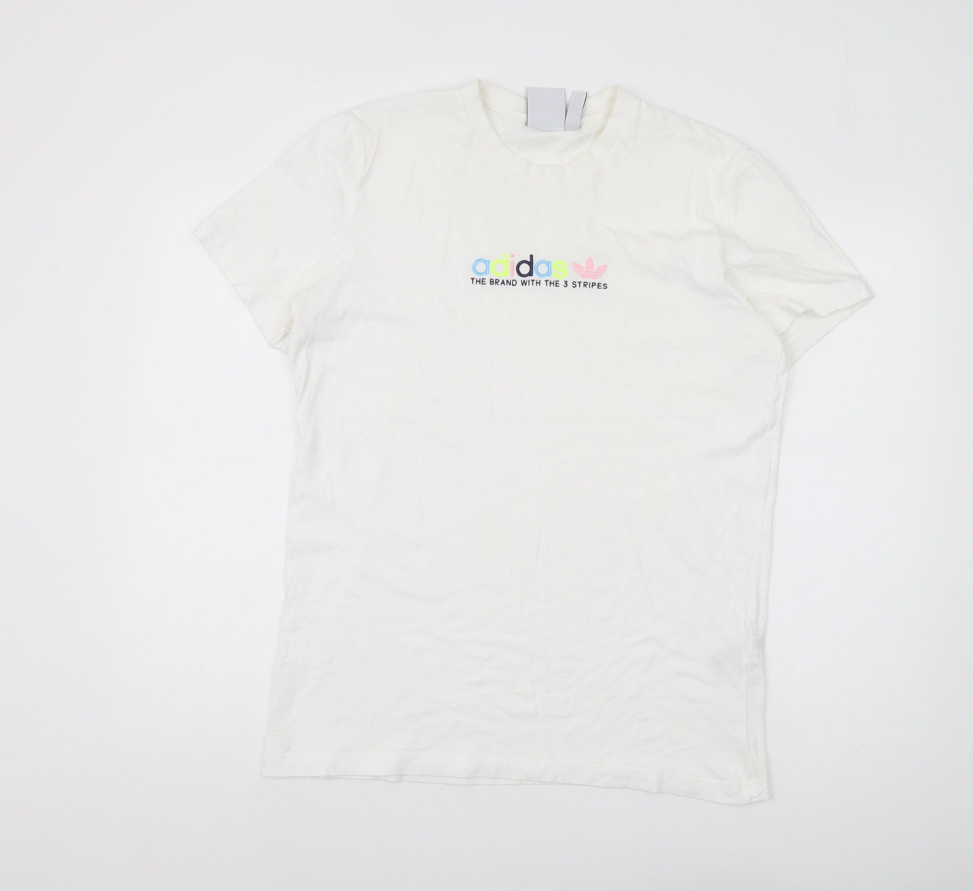 Adidas Men's White L T-Shirt, Short Sleeve, Logo Accent