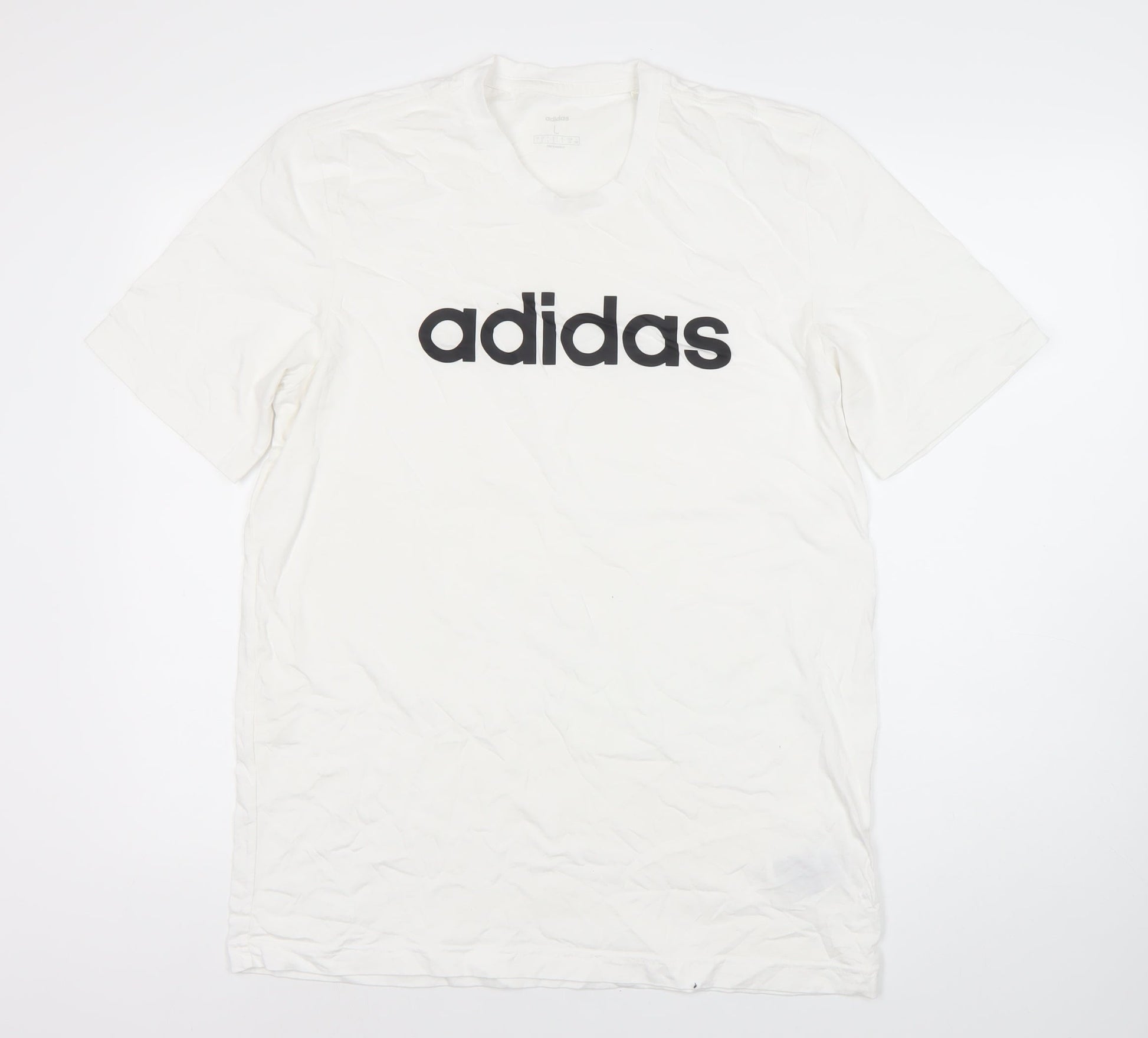 Adidas Men's White Logo T-Shirt, Size L, Crew Neck