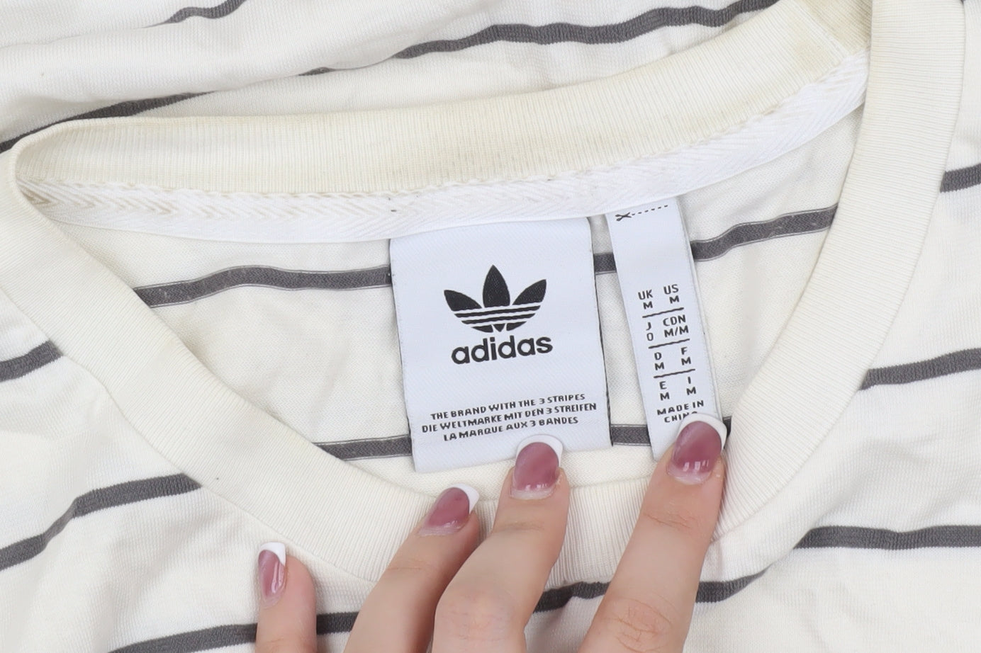 Adidas Men's White Striped Short Sleeve Crew Neck T-Shirt M