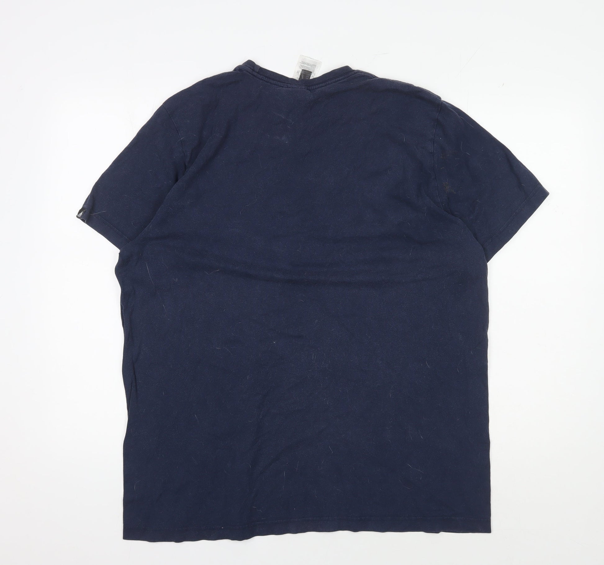 Adidas Men's XL Blue Cotton T-Shirt - Logo, Crew Neck