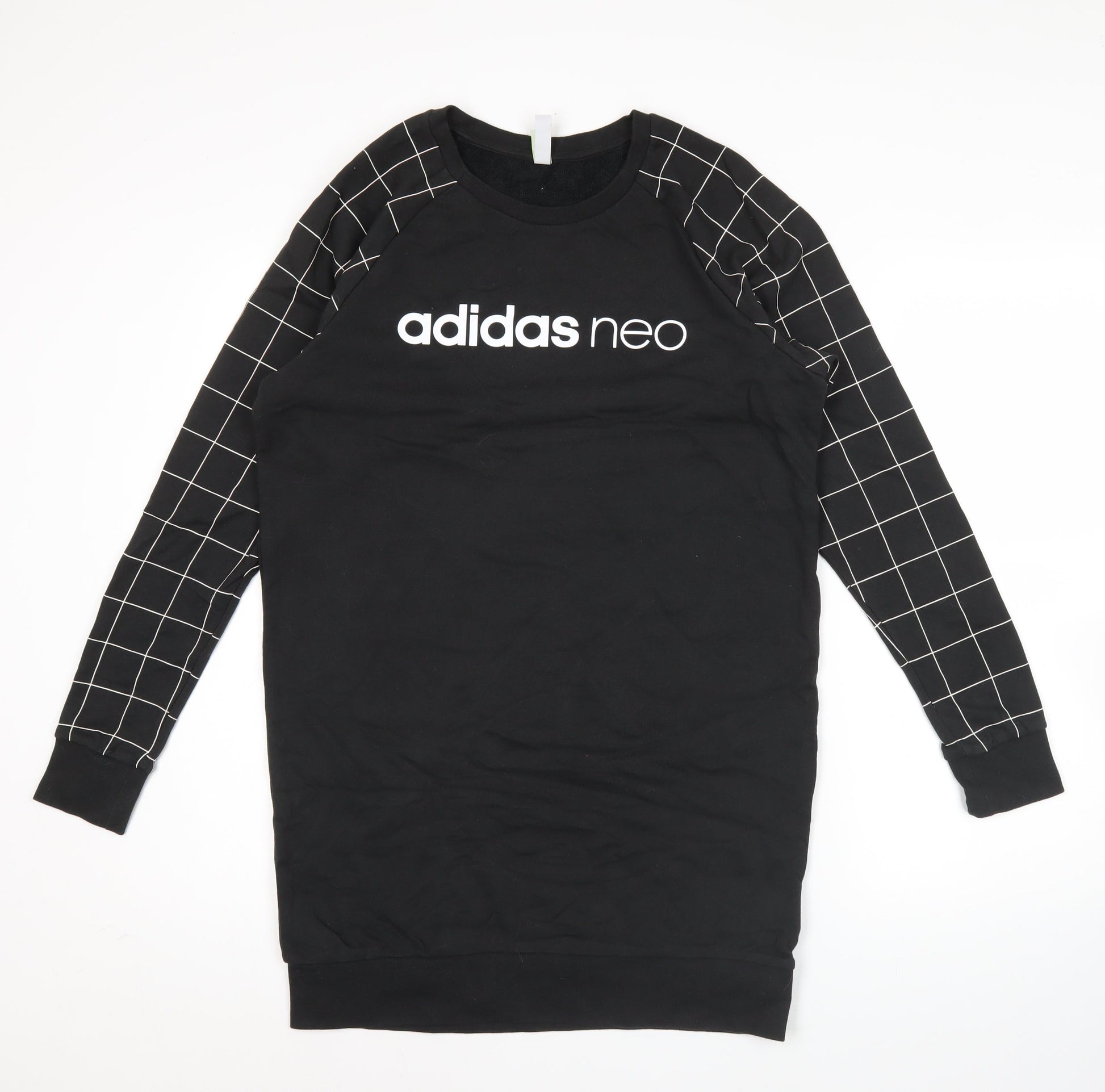 Adidas Neo Womens Black Sweatshirt Dress UK 14 Raglan Grid Sleeve