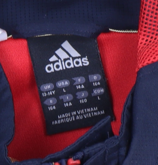 Adidas Teens Blue Waterproof Hooded Sports Jacket Size 164