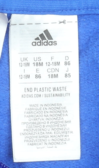 Adidas Unisex Baby Blue & Grey Hooded Track Jacket 12-18 Months Full Zip