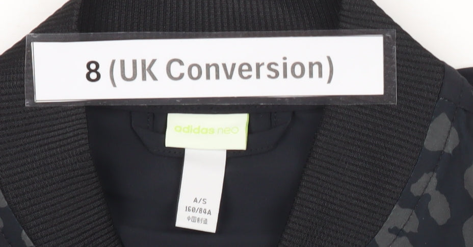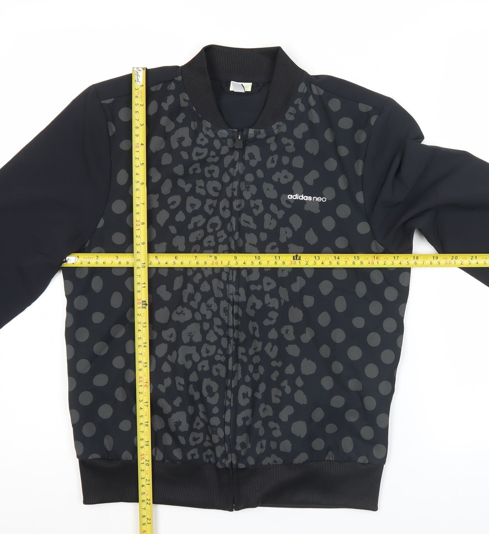 Adidas Women Black Size 8 Varsity Bomber Jacket Animal Print