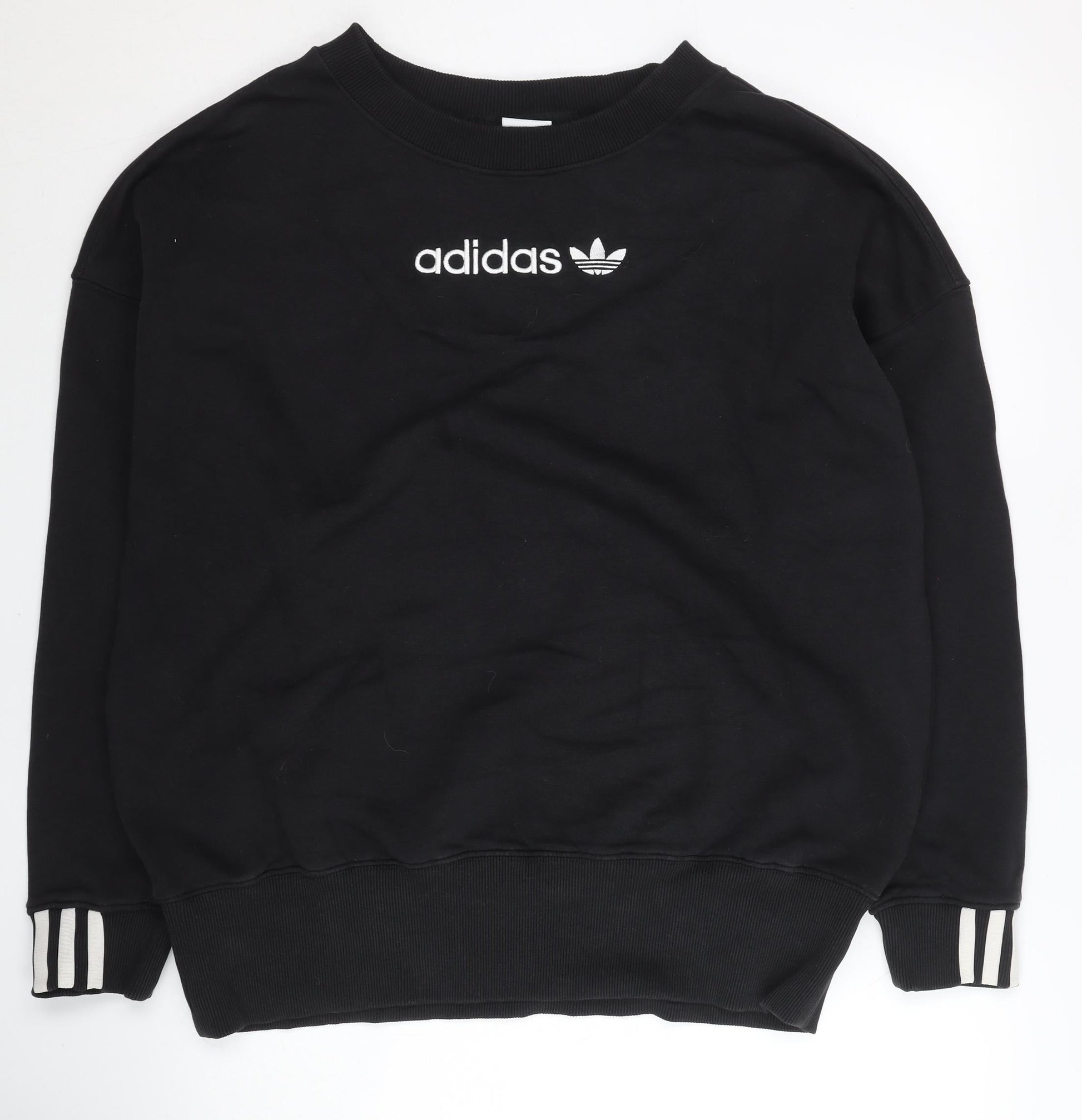 Adidas Women Black Sweatshirt Size 10 Pullover Crew Neck Logo