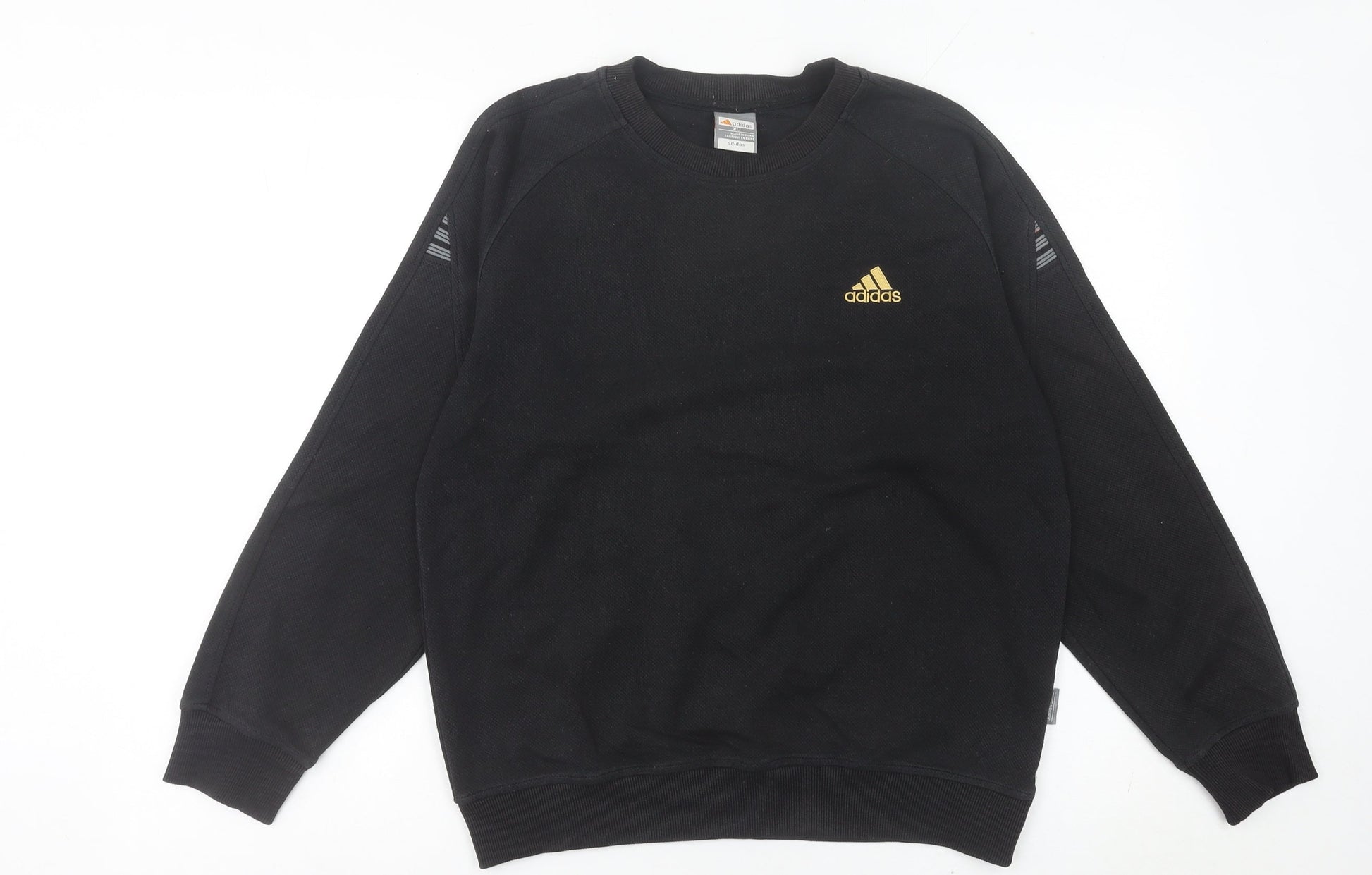 Adidas Women Black Sweatshirt Size 12 UK Crew Neck Logo Pullover