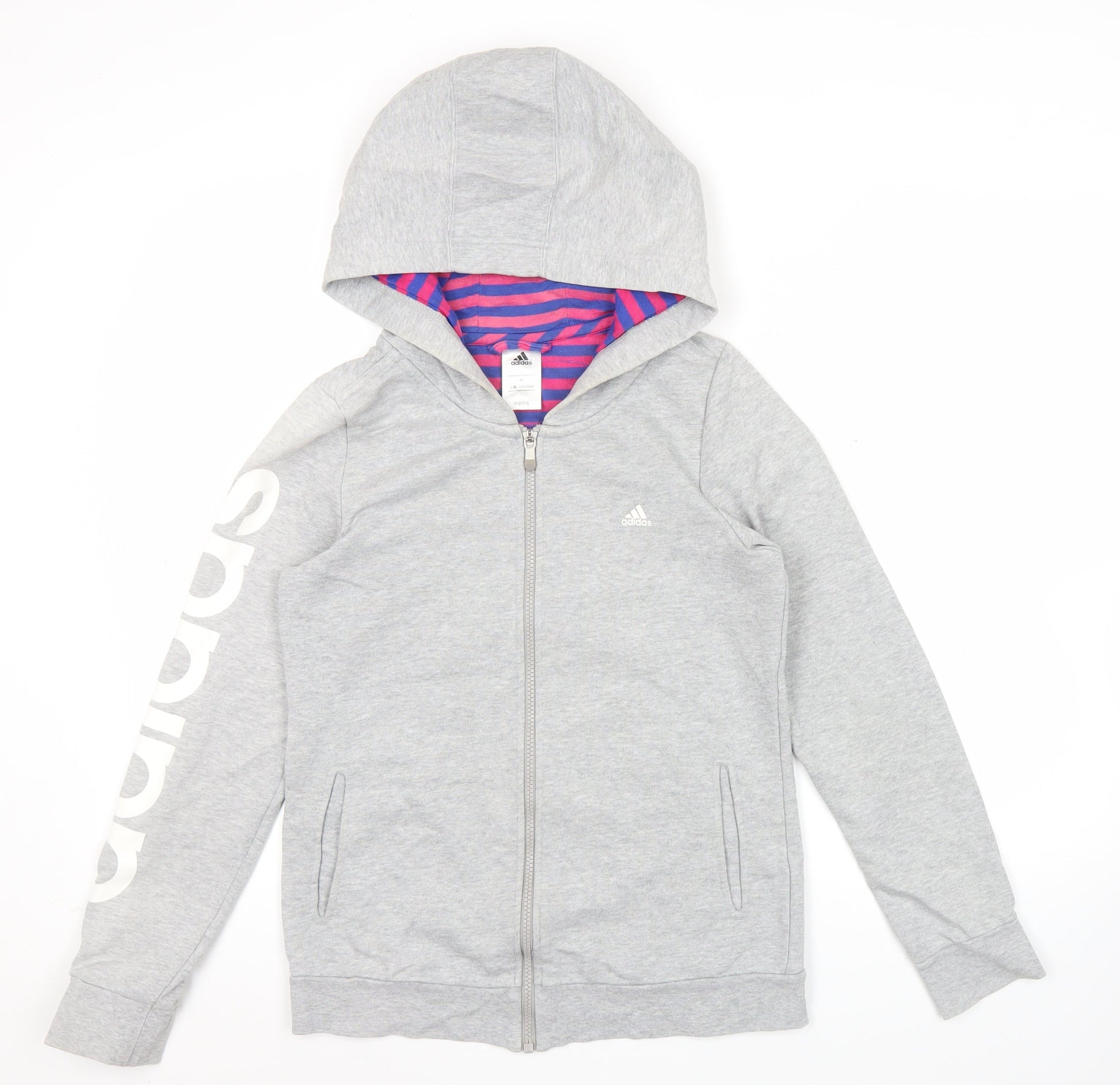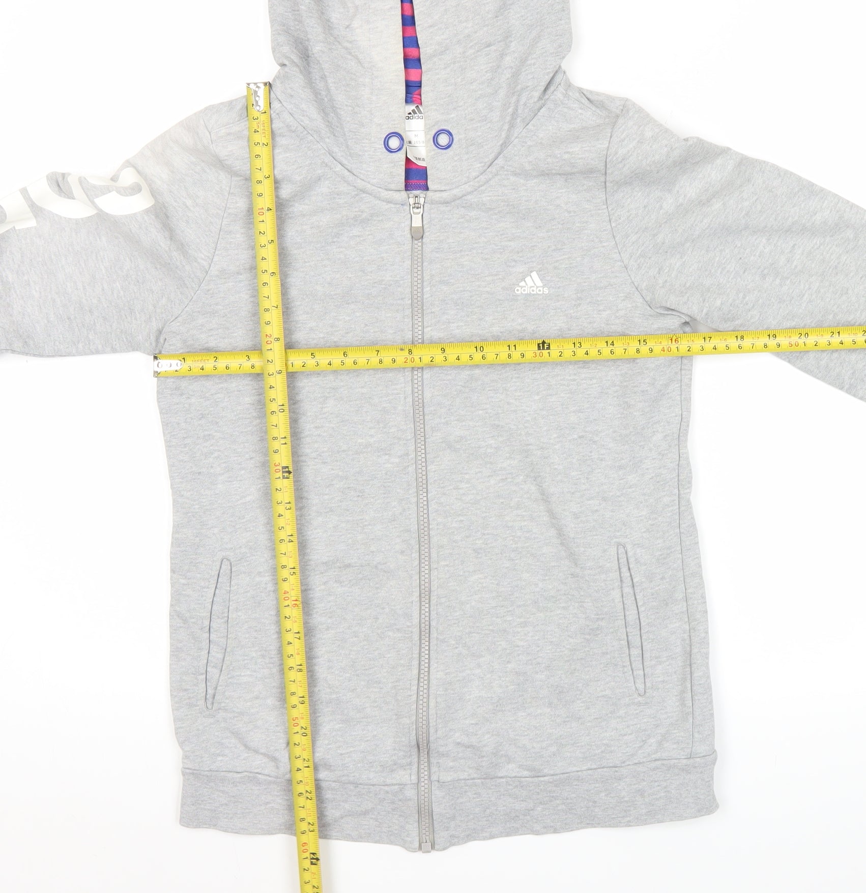 Adidas Women Grey Full Zip Hoodie Size 10 Regular Fit Logo Sportswear