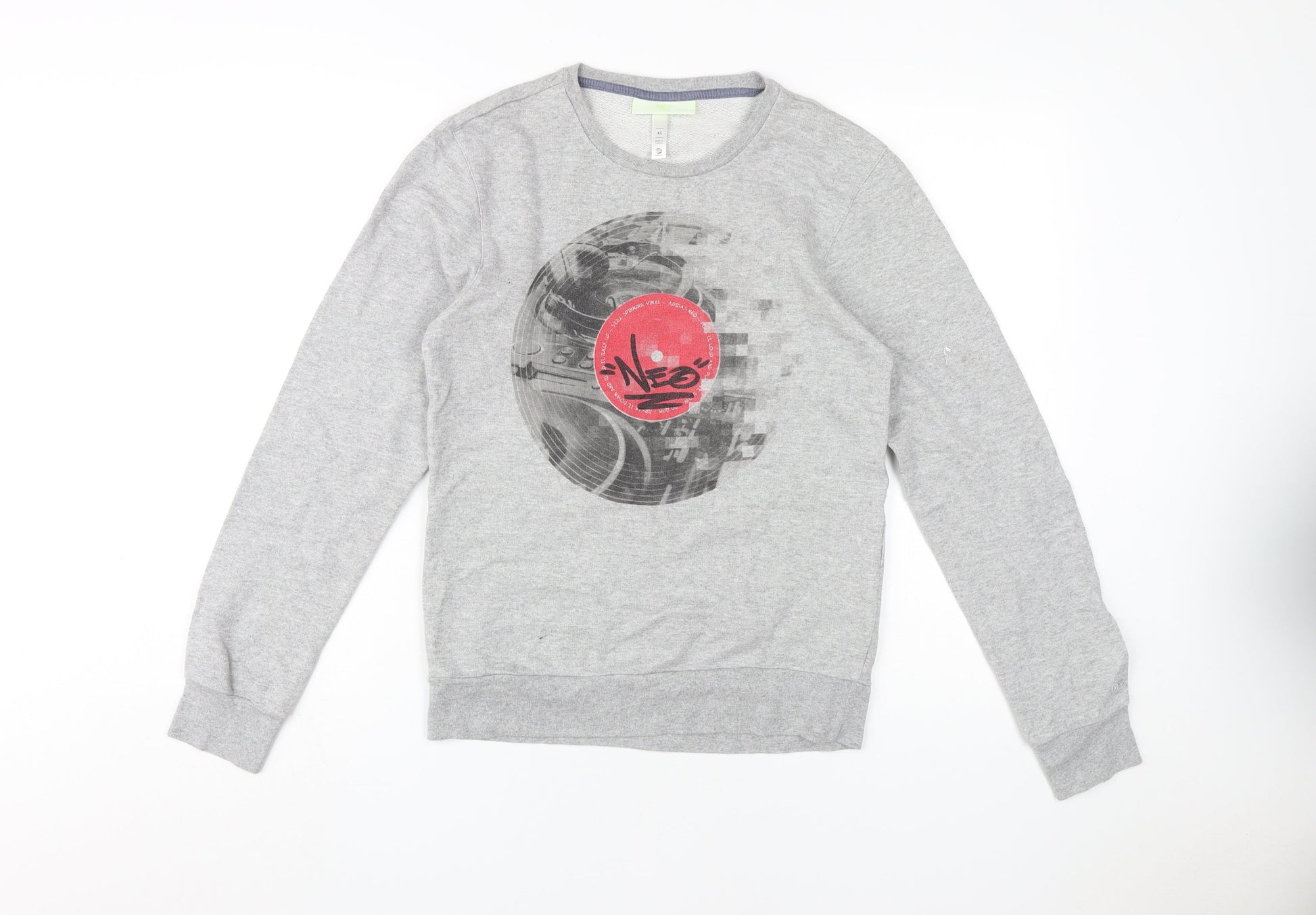 Adidas Women Grey Sweatshirt, XS, Graphic Print, Cotton Blend