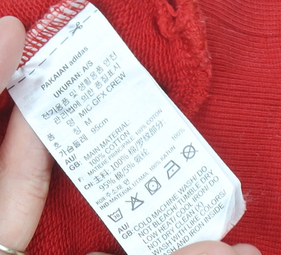 Adidas Women Red Sweatshirt UK 12 Crew Neck Graphic Print Cotton
