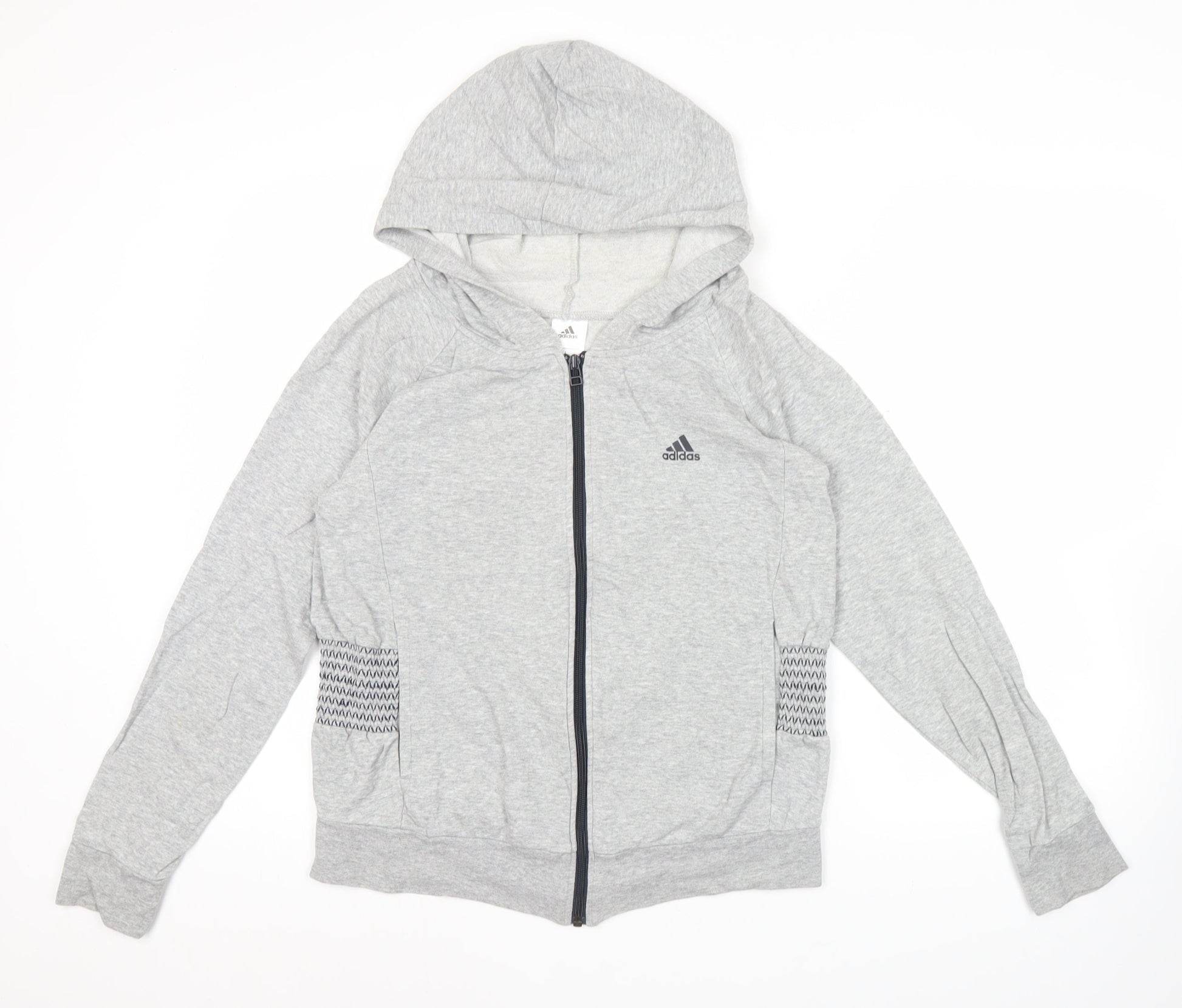 Adidas Women’s Grey Full Zip Hoodie Size 12 UK Cotton Blend