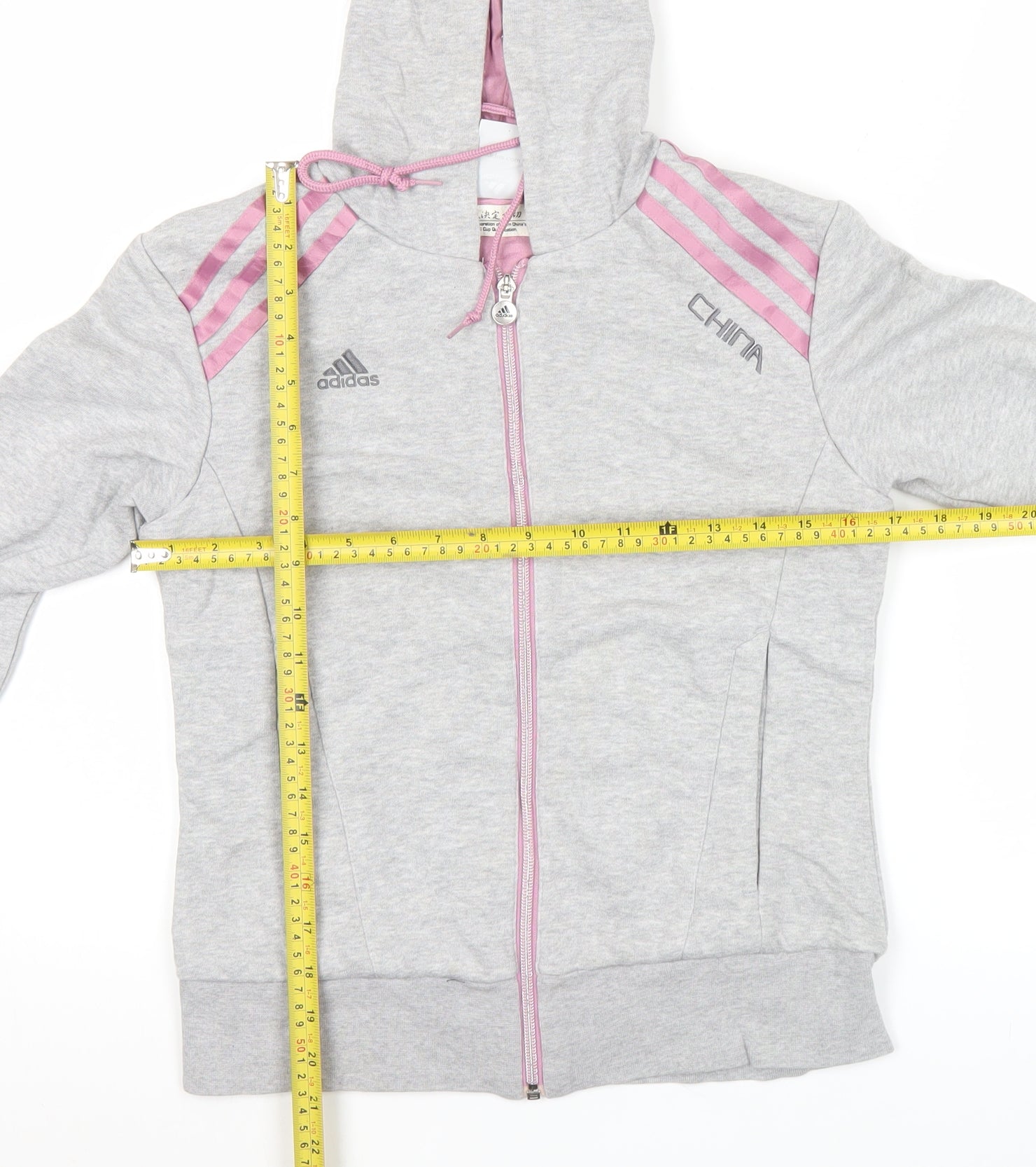 Adidas Women’s Grey Full Zip Hoodie Size 8 Regular Fit Sportswear