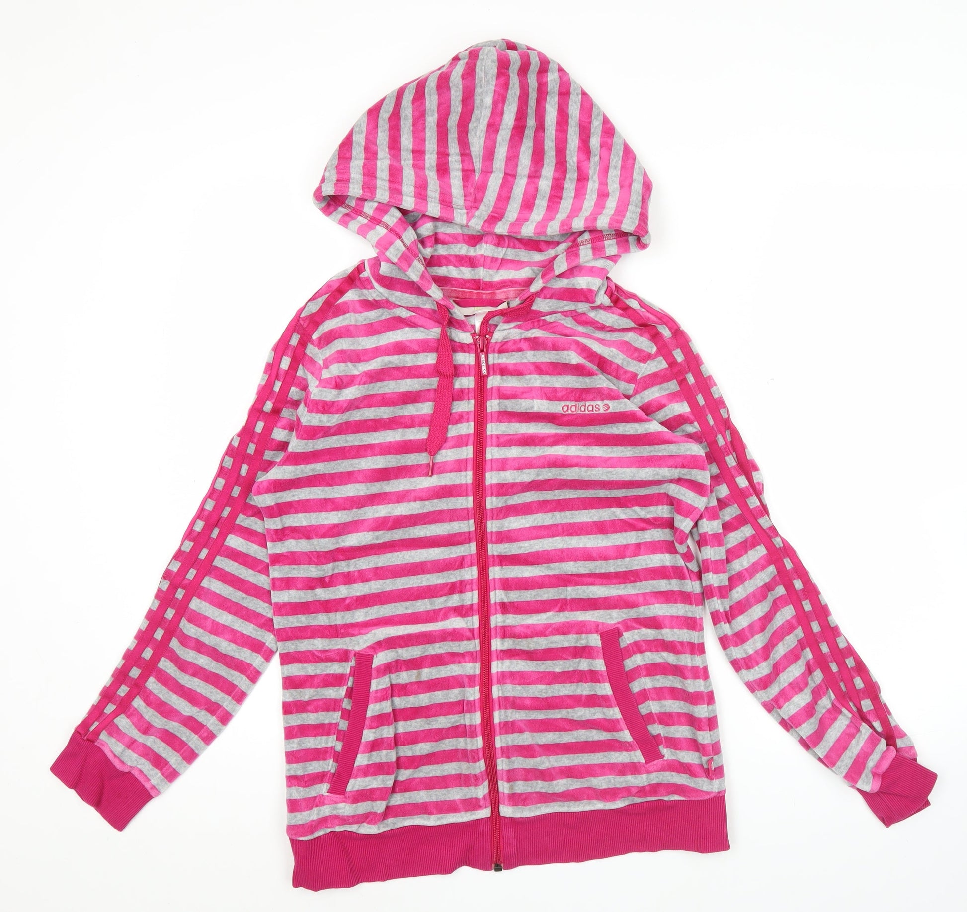 Adidas Women’s Pink Grey Striped Full Zip Hoodie UK 12