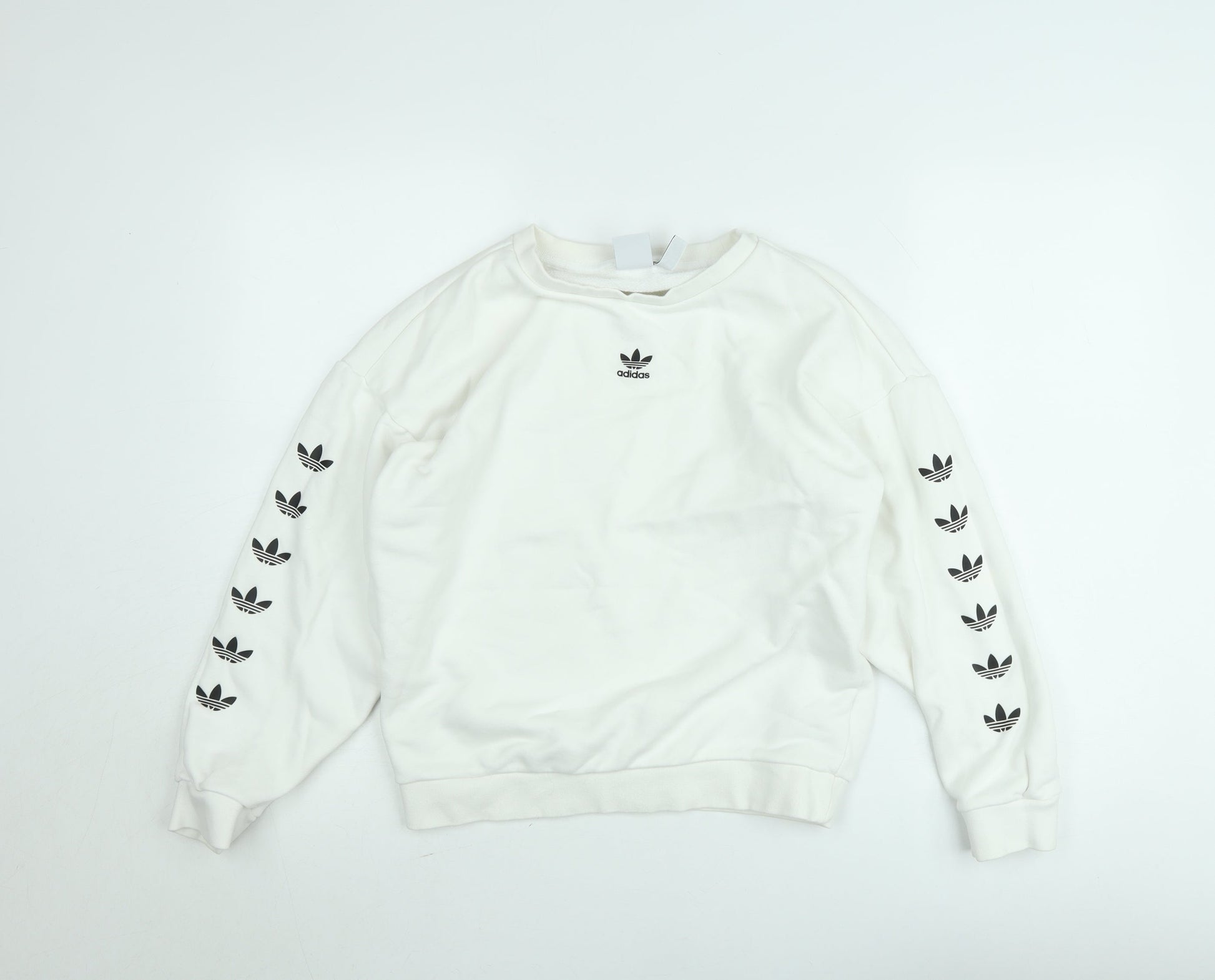 Adidas Women’s White Crew Neck Sweatshirt Size 8 Logo Print Pullover
