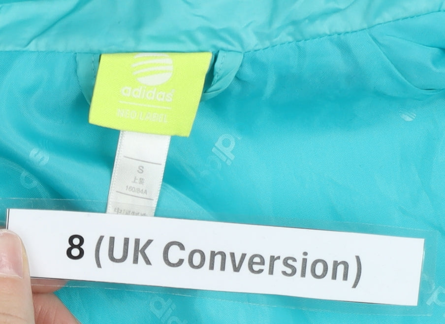 Adidas Womens Black Blue Windbreaker Jacket Size 8 Hooded Sportswear