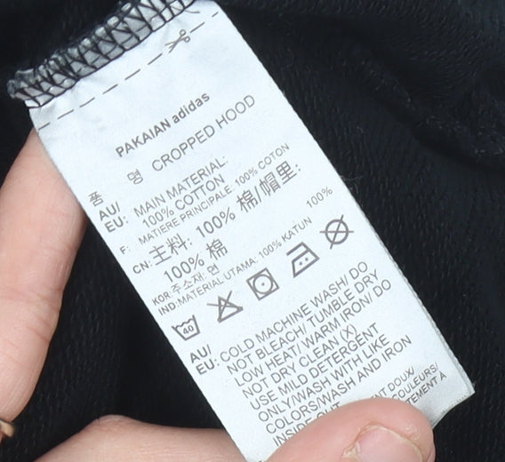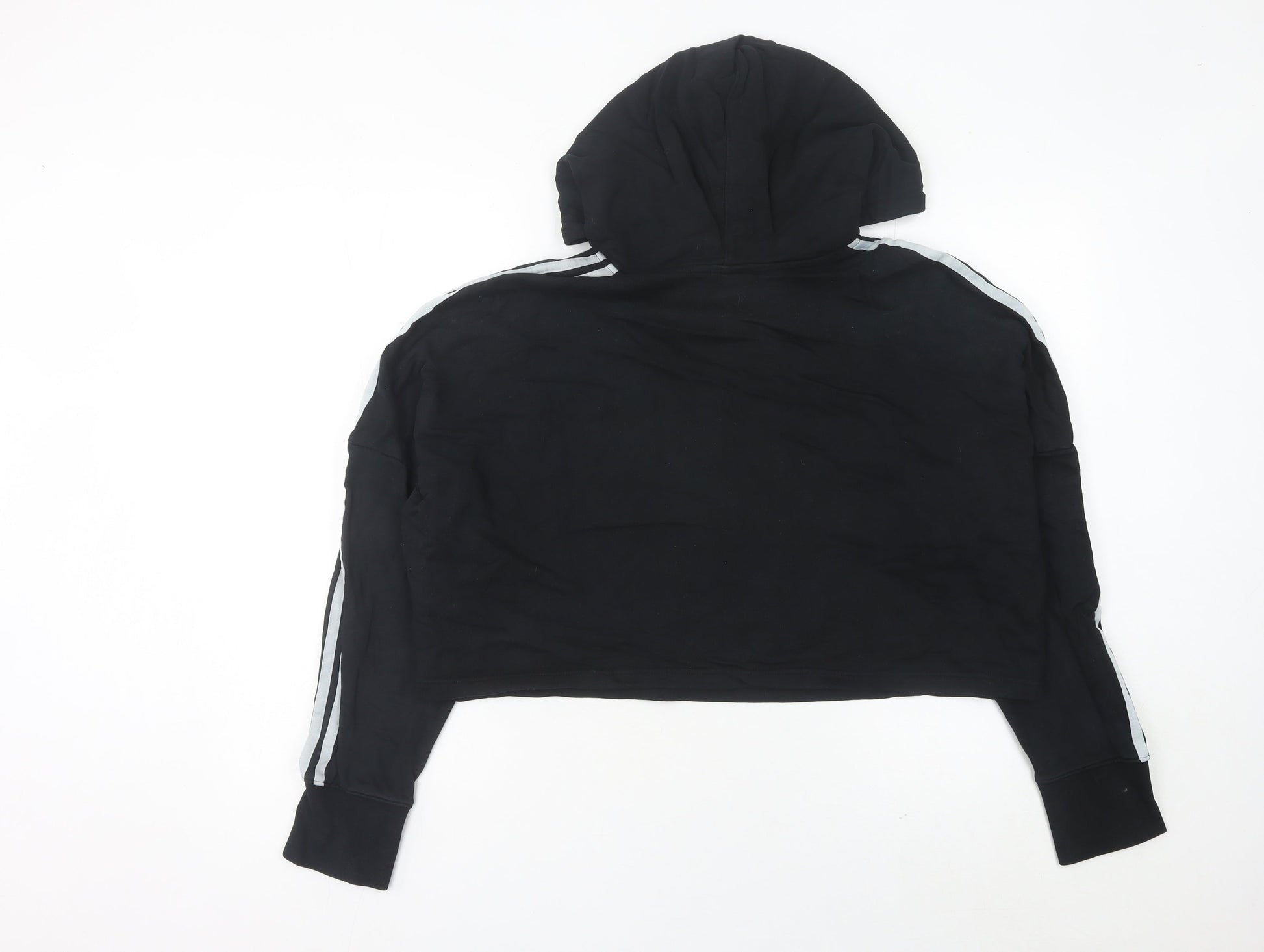 Adidas Womens Black Cropped Hoodie Size 12 Cotton Hooded Sweatshirt
