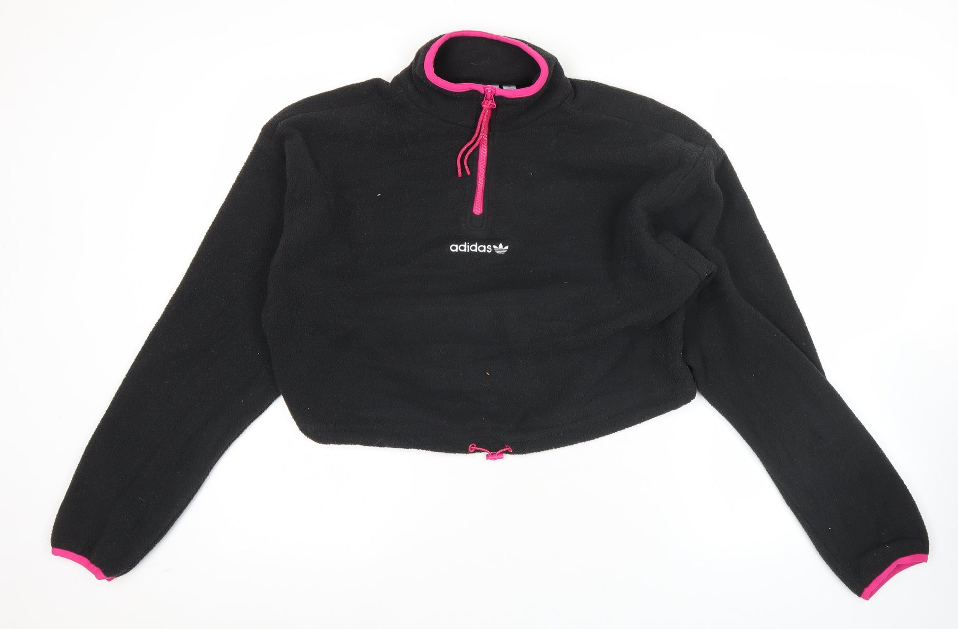 Adidas Womens Black Fleece Sweatshirt Size 10 1/4 Zip Drawstring