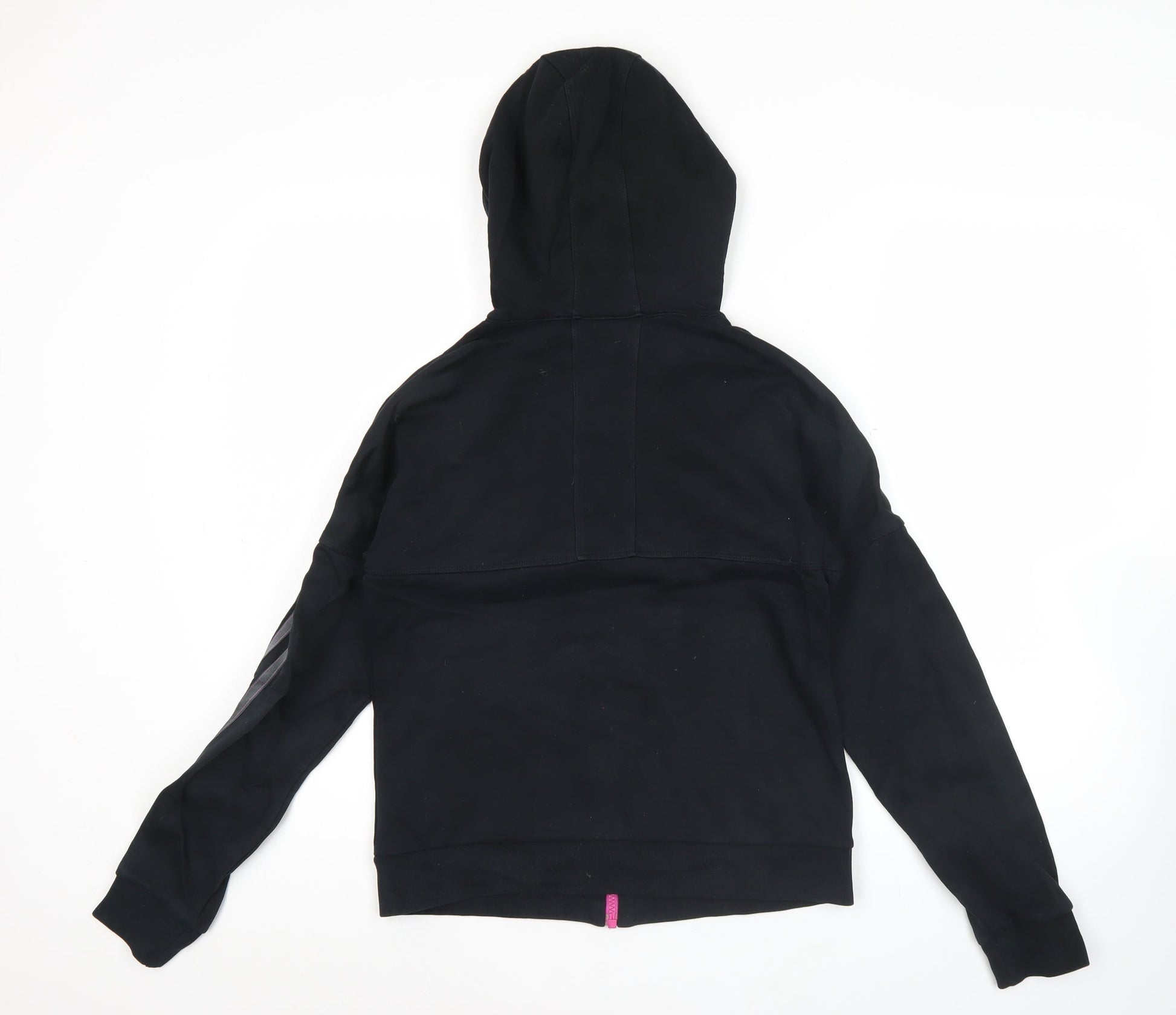 Adidas Womens Black Full Zip Hoodie UK 10 Cotton Blend Sportswear