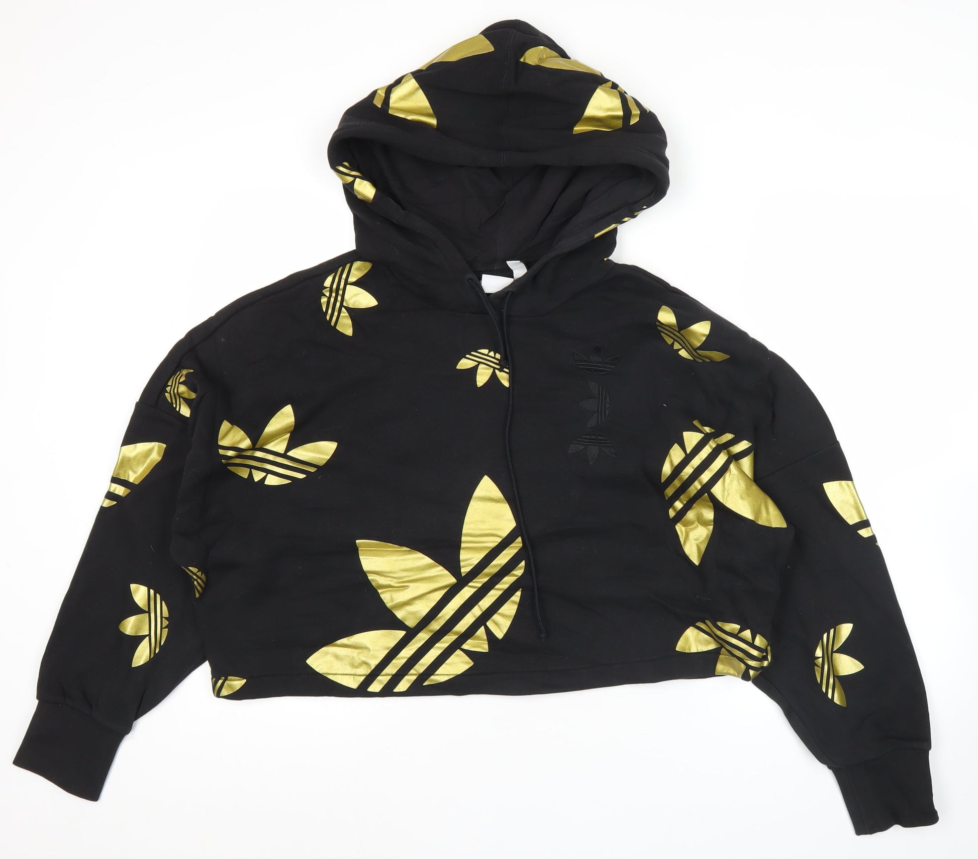 Adidas Womens Black Gold Logo Hoodie Size 10 Pullover Hooded Sweatshirt