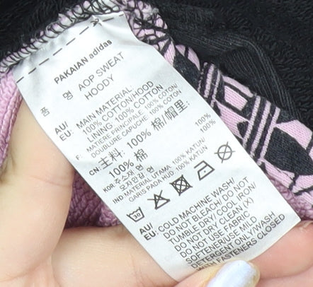 Adidas Womens Black Hoodie UK 8 Pullover Cotton 1/2 Zip Logo
