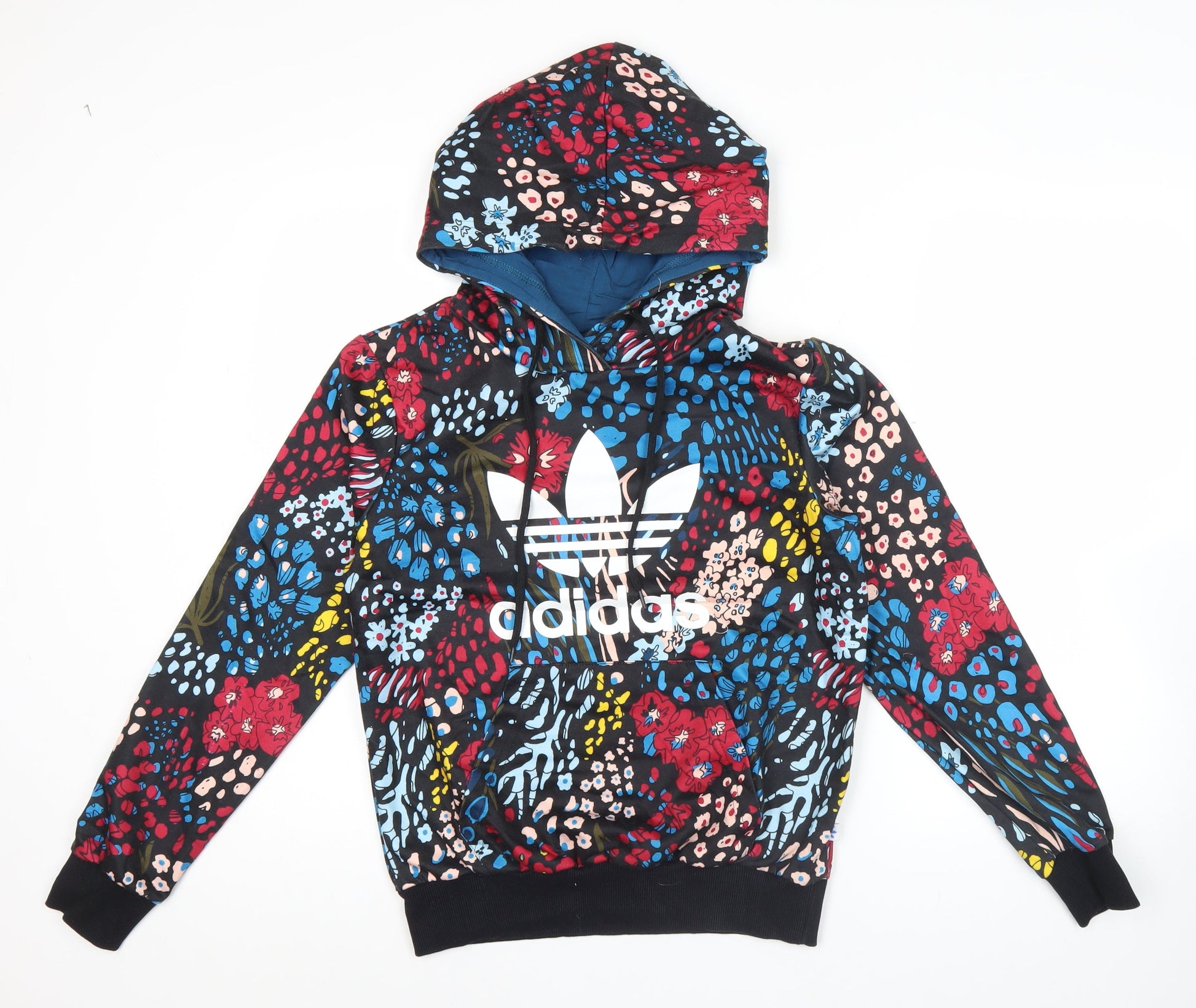 Adidas Womens Black Multicoloured Logo Hoodie Size 12 Cotton Blend