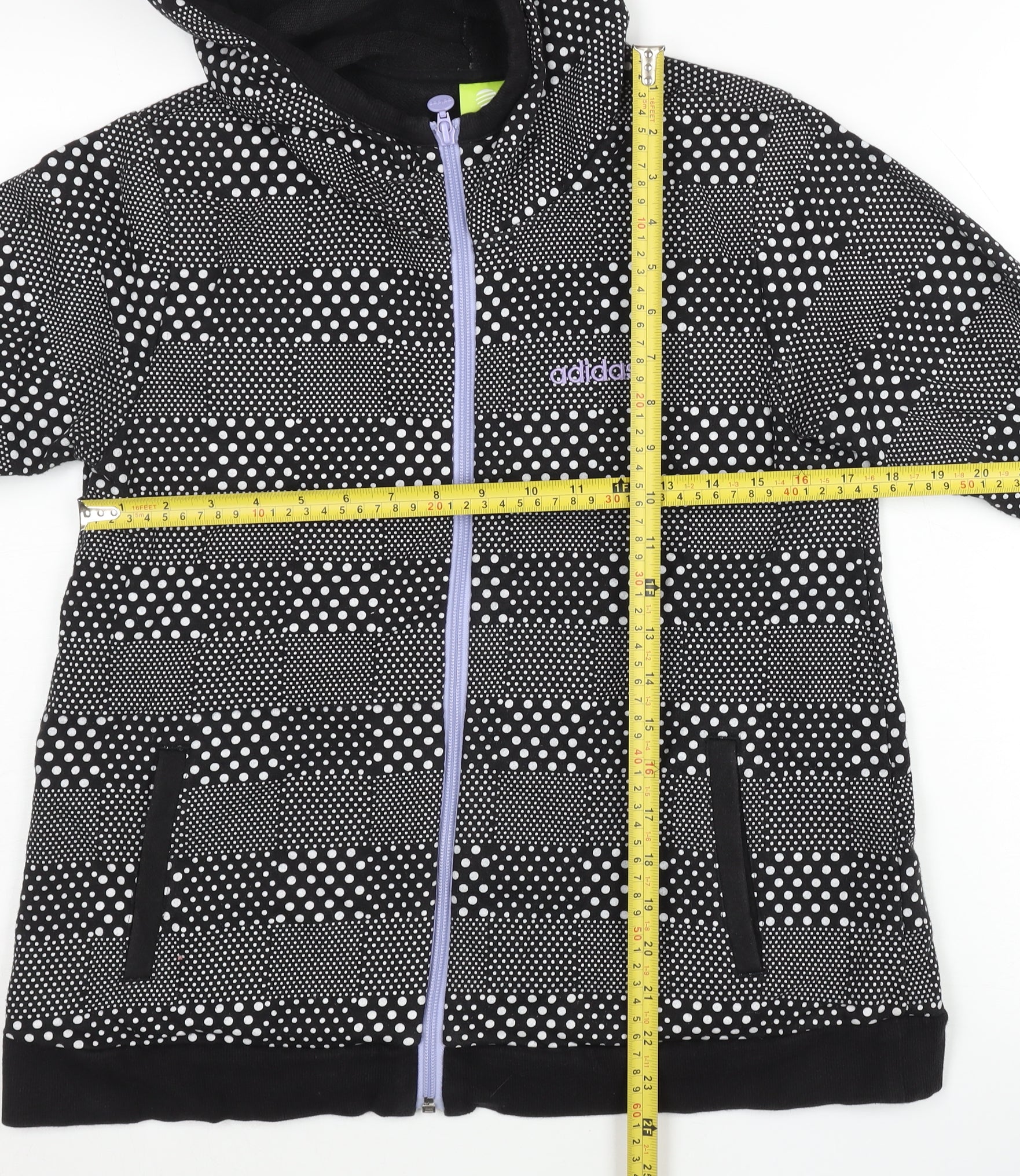 Adidas Womens Black Polka Dot Full Zip Hoodie Size 10