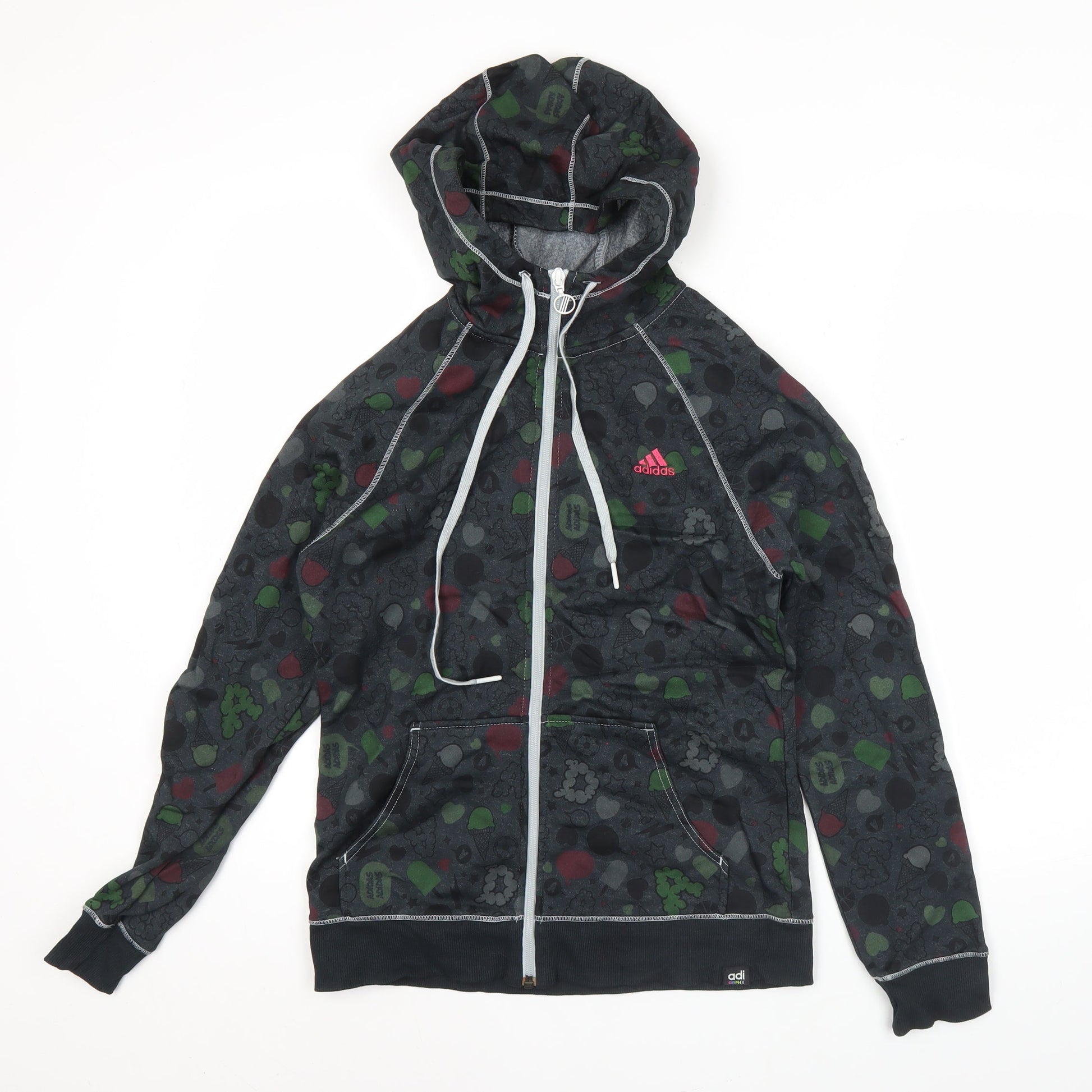 Adidas Womens Black Size 10 Full Zip Hoodie Sweatshirt Sportswear