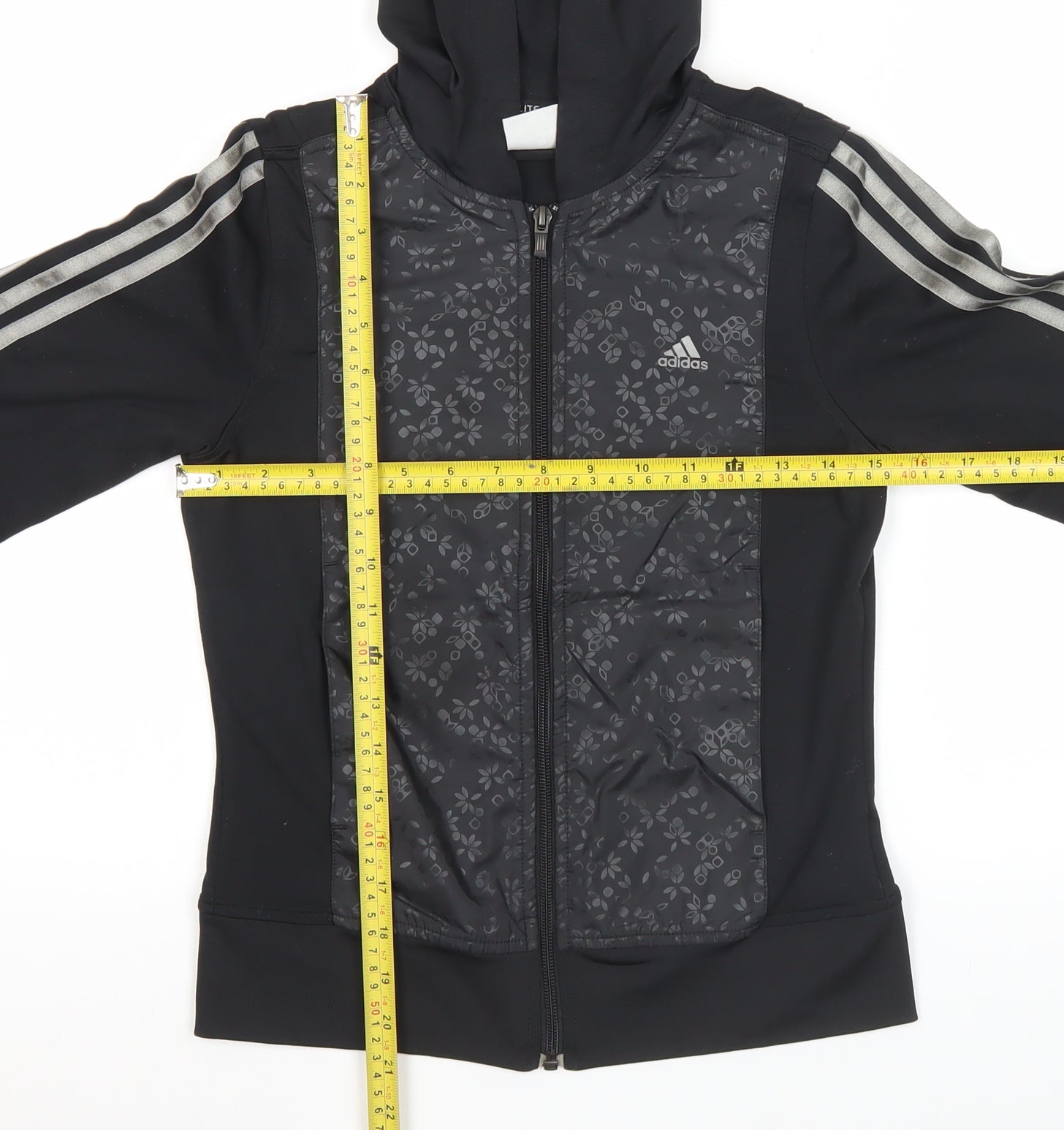 Adidas Womens Black Size 6 Full Zip Hooded Sports Hoodie Jacket