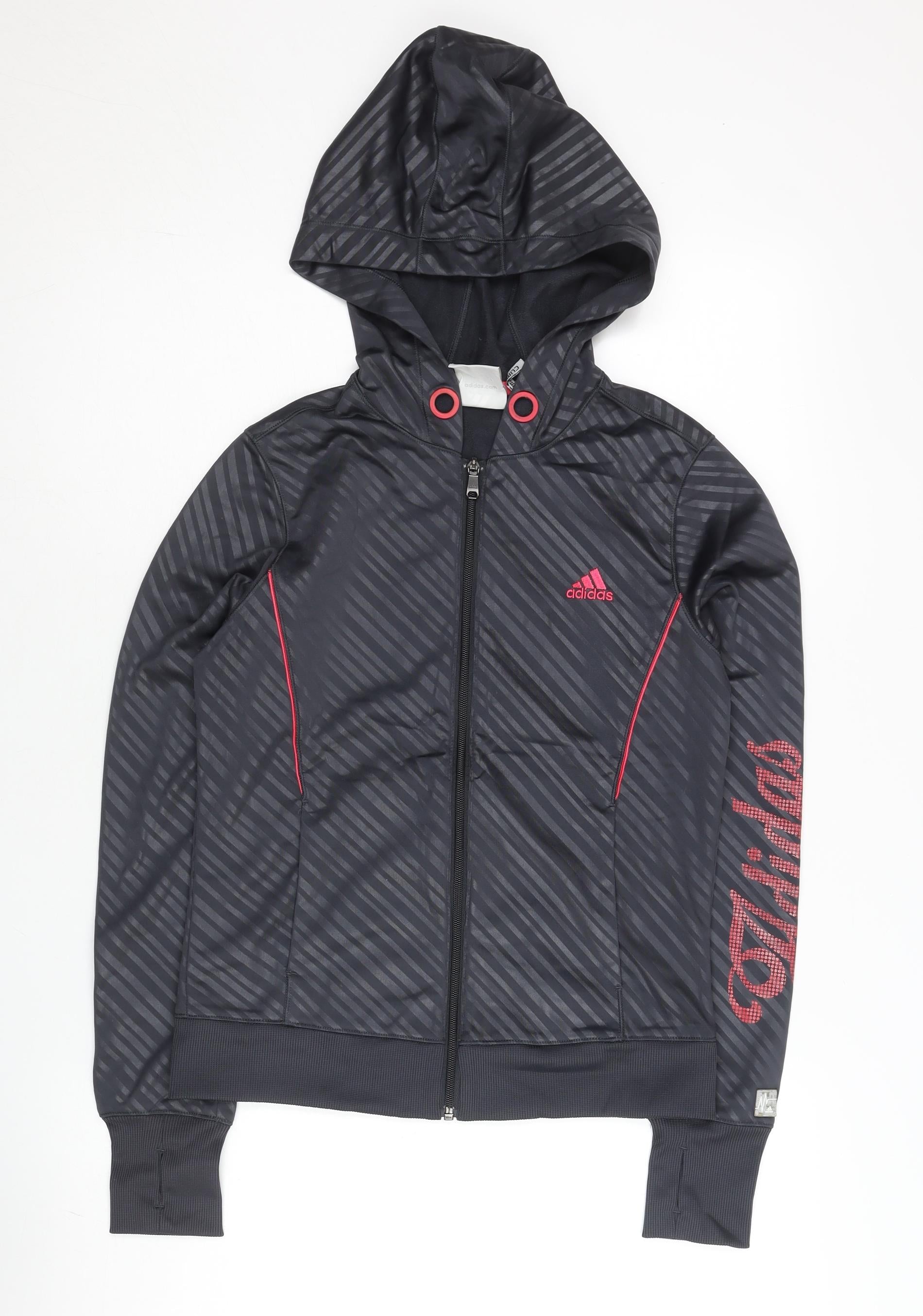 Adidas Womens Black Size 8 Full Zip Hoodie Sweatshirt Polyester
