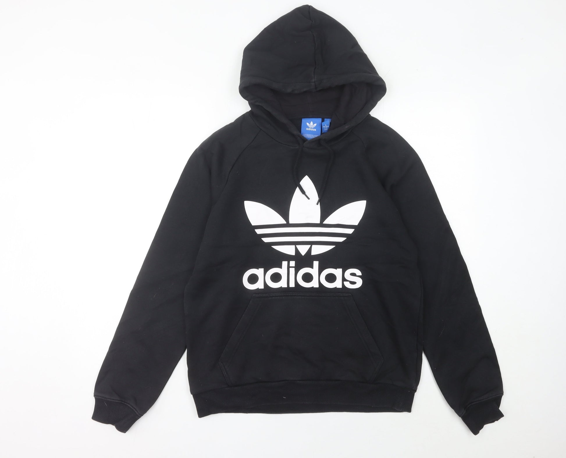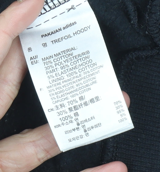 Adidas Womens Black Trefoil Hoodie UK 12 Pullover Cotton Blend