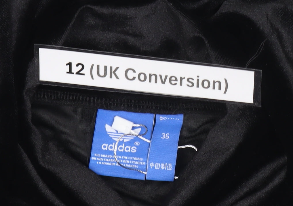 Adidas Womens Black Velour Hoodie UK 12 Pullover Logo Hooded Sweatshirt