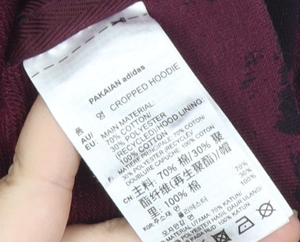 Adidas Womens Burgundy Hoodie Size 6 Cropped Pullover Leopard Print