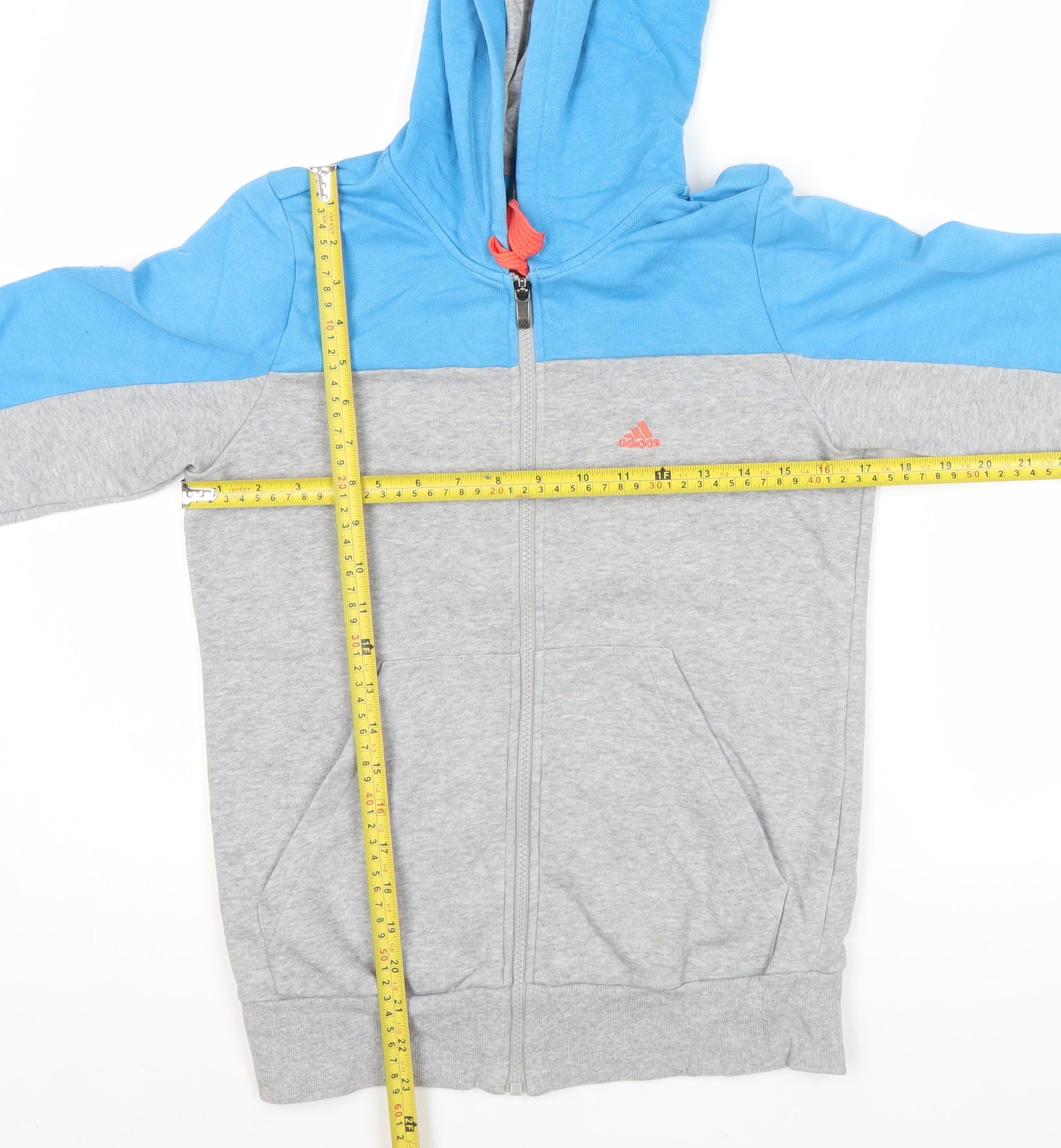 Adidas Womens Grey Blue Full Zip Hoodie Size 8 UK Cotton Blend