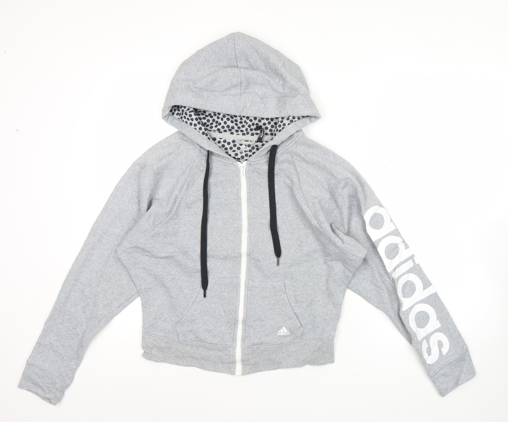 Adidas Womens Grey Full Zip Hoodie Size 6 UK Logo Print Cotton Blend