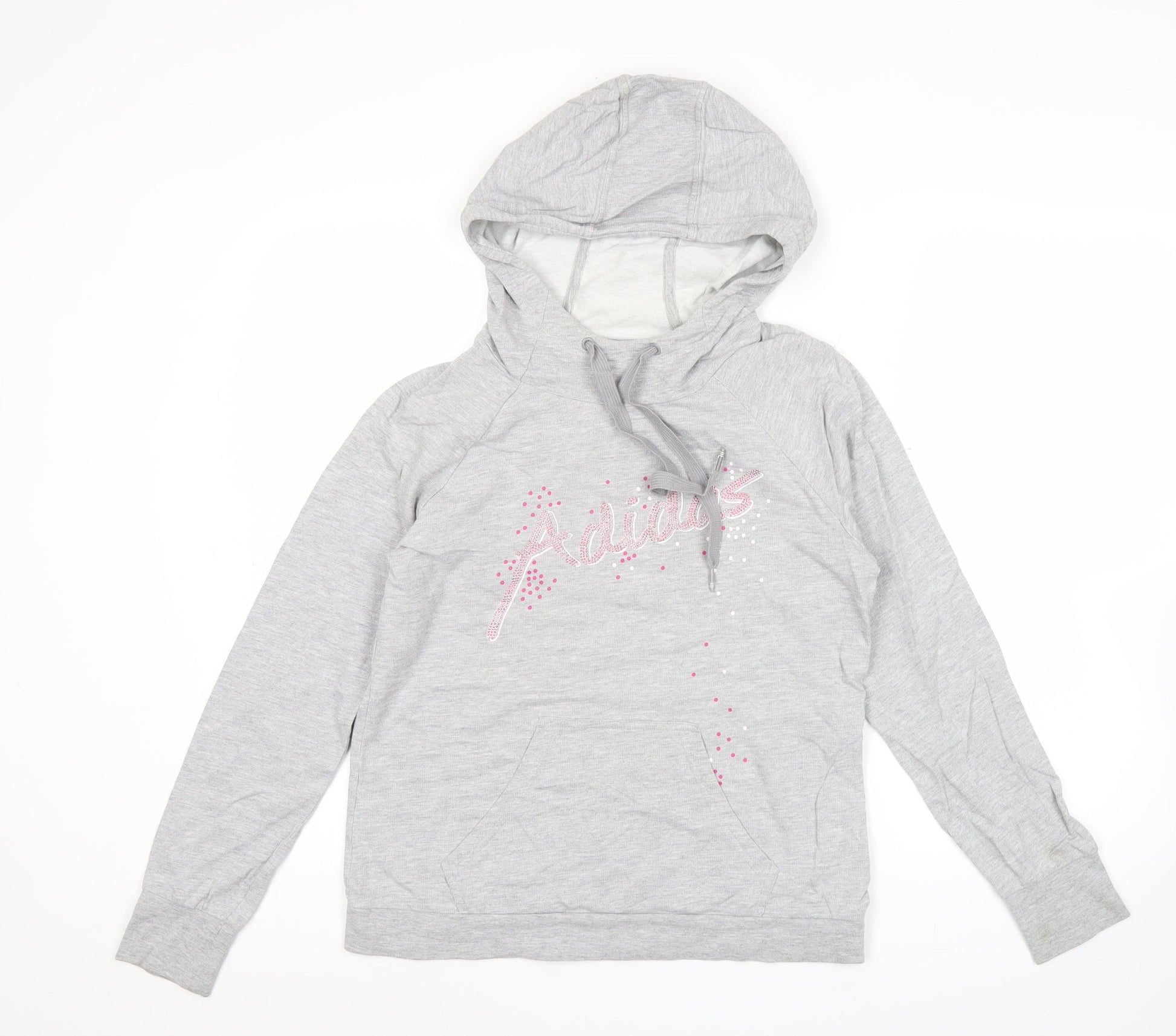 Adidas Womens Grey Hoodie Size 10 Pullover Long Sleeve Logo