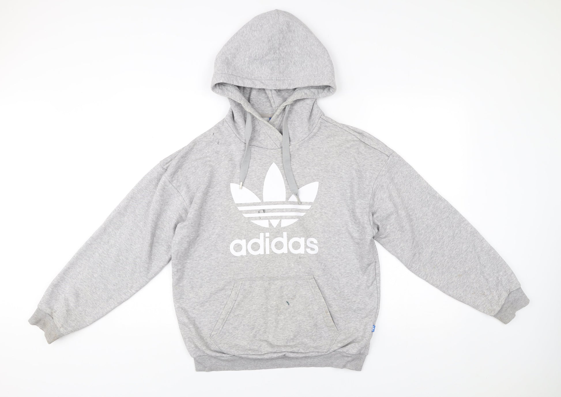Adidas Womens Grey XS Pullover Hoodie Sweatshirt Logo Raglan