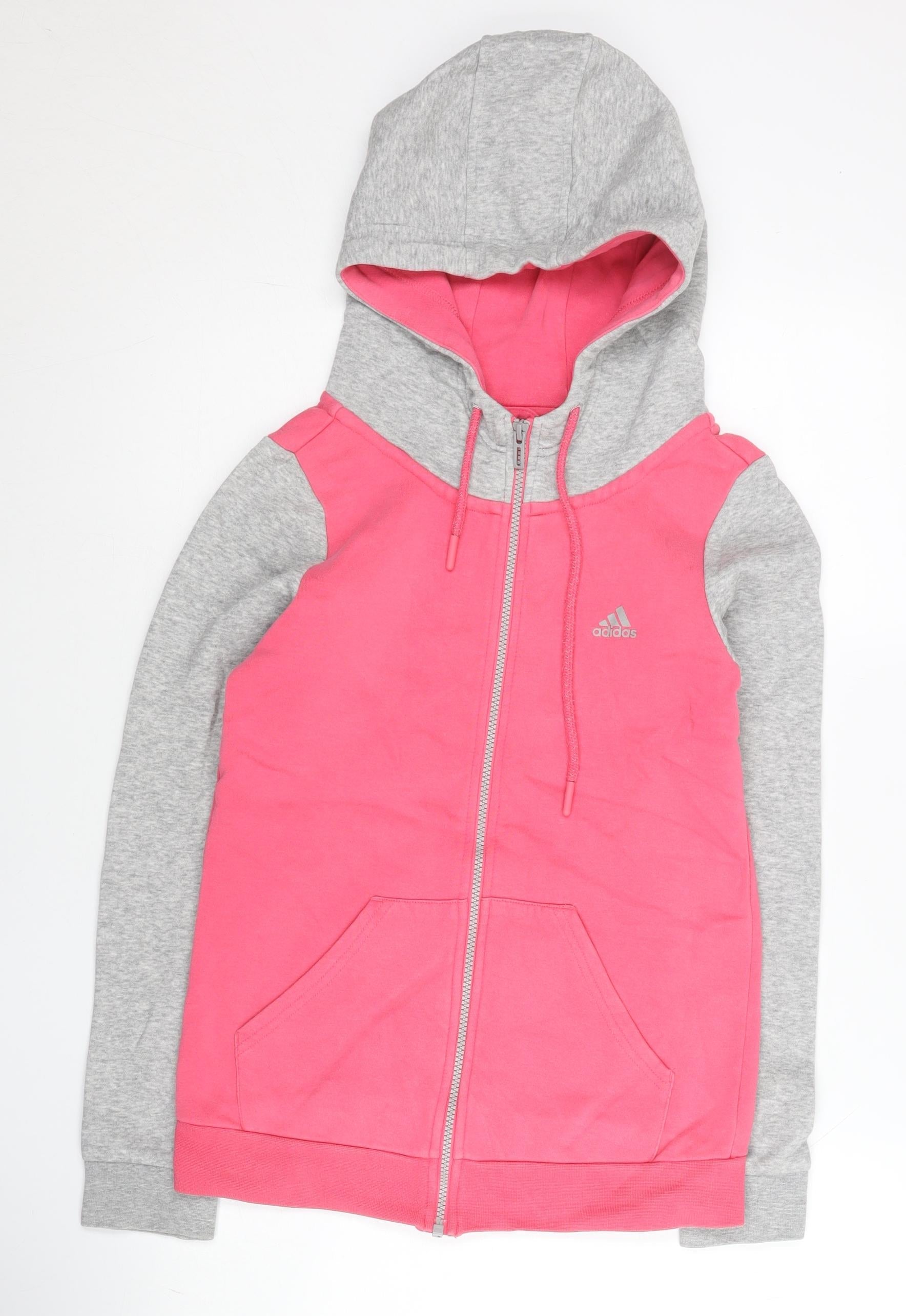 Adidas Womens Hoodie Pink Grey Size 8 Full Zip Sportswear