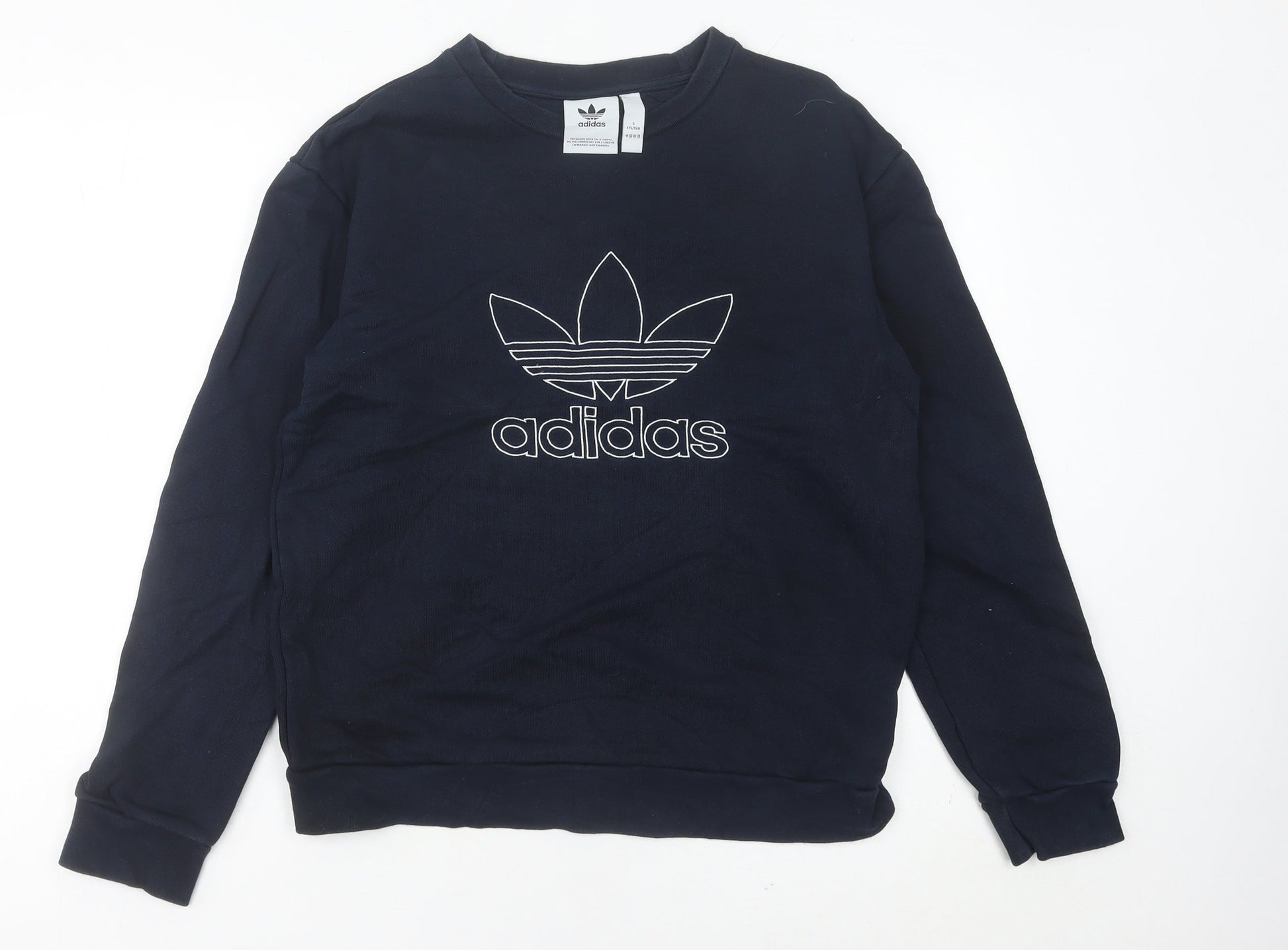 Adidas Womens Navy Sweatshirt Size 12 Cotton Crew Neck Logo